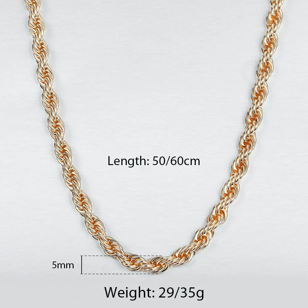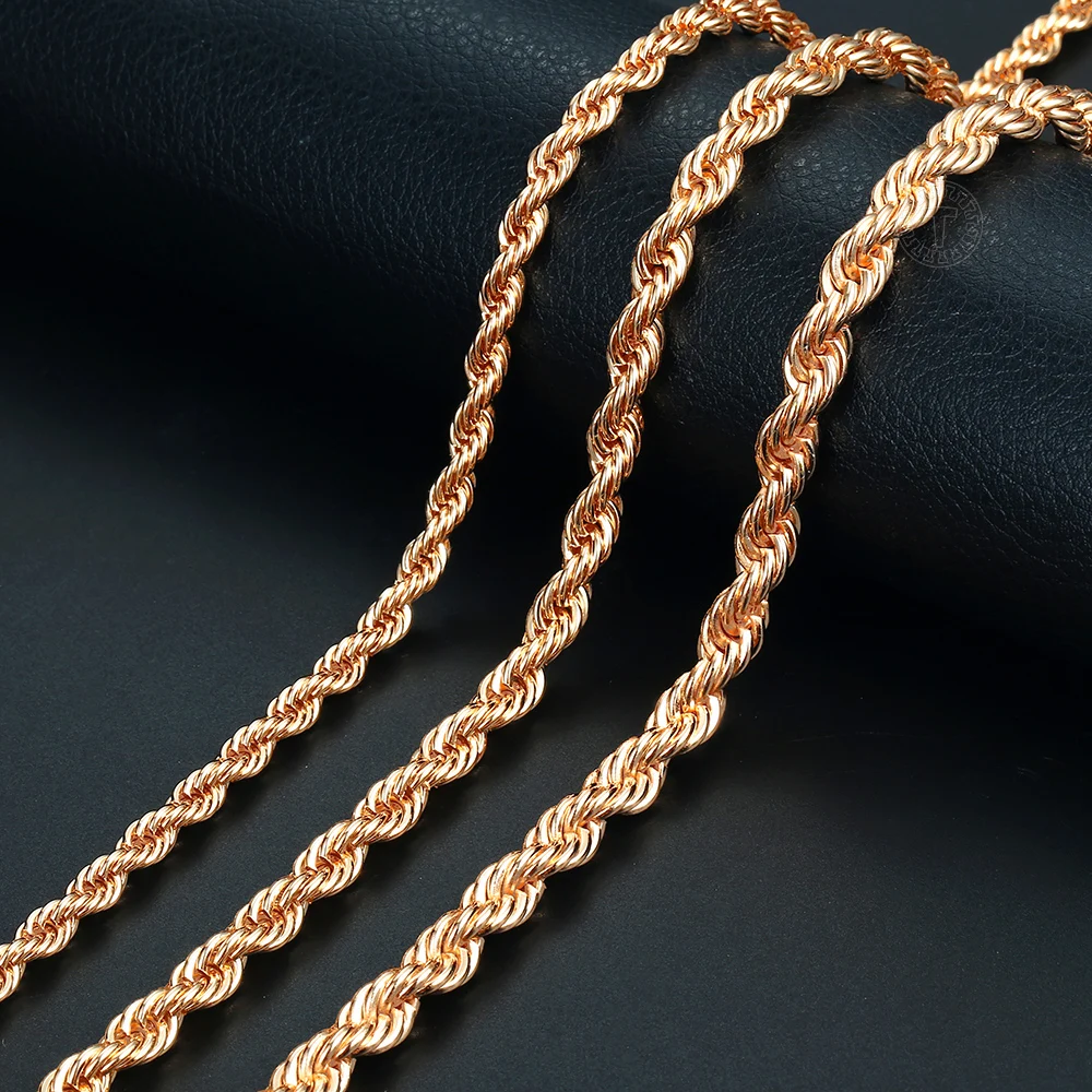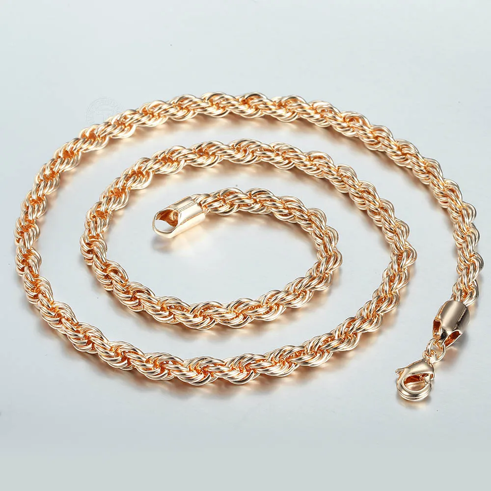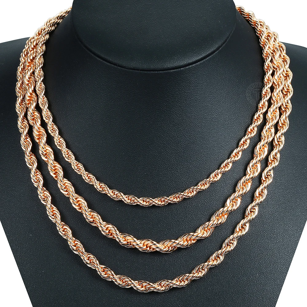 Подвеска CNM02 для мужчин и женщин, ожерелье из розового золота с витой веревкой, 5 мм, 6 мм, 7 мм, модные ювелирные аксессуары, 585