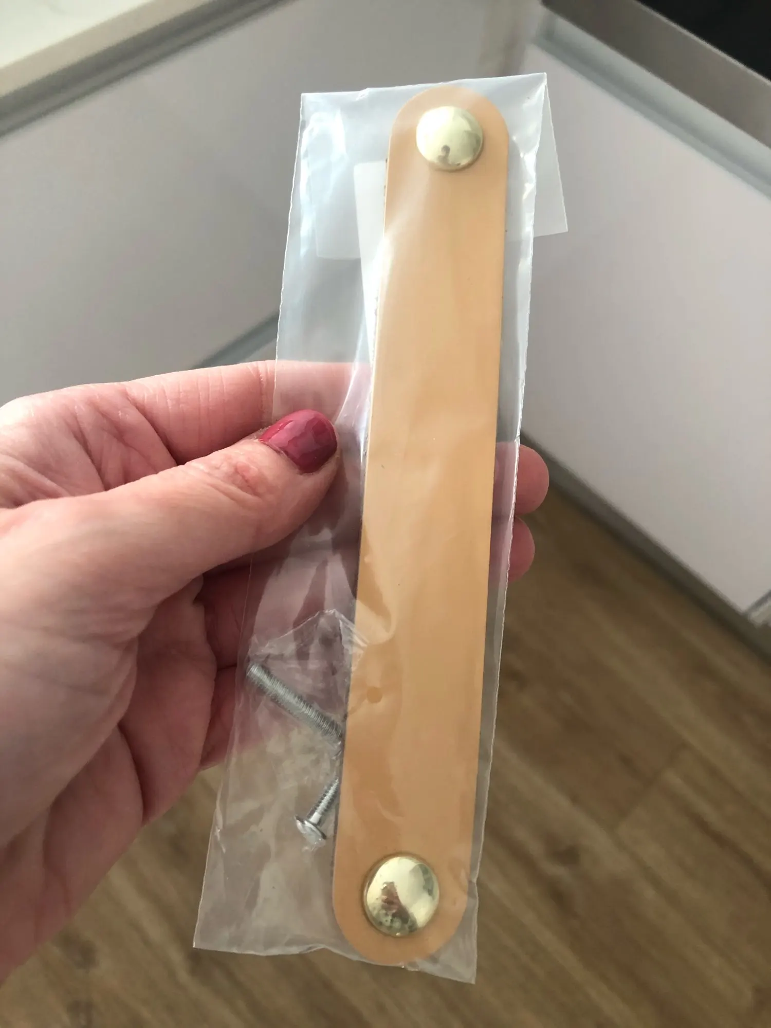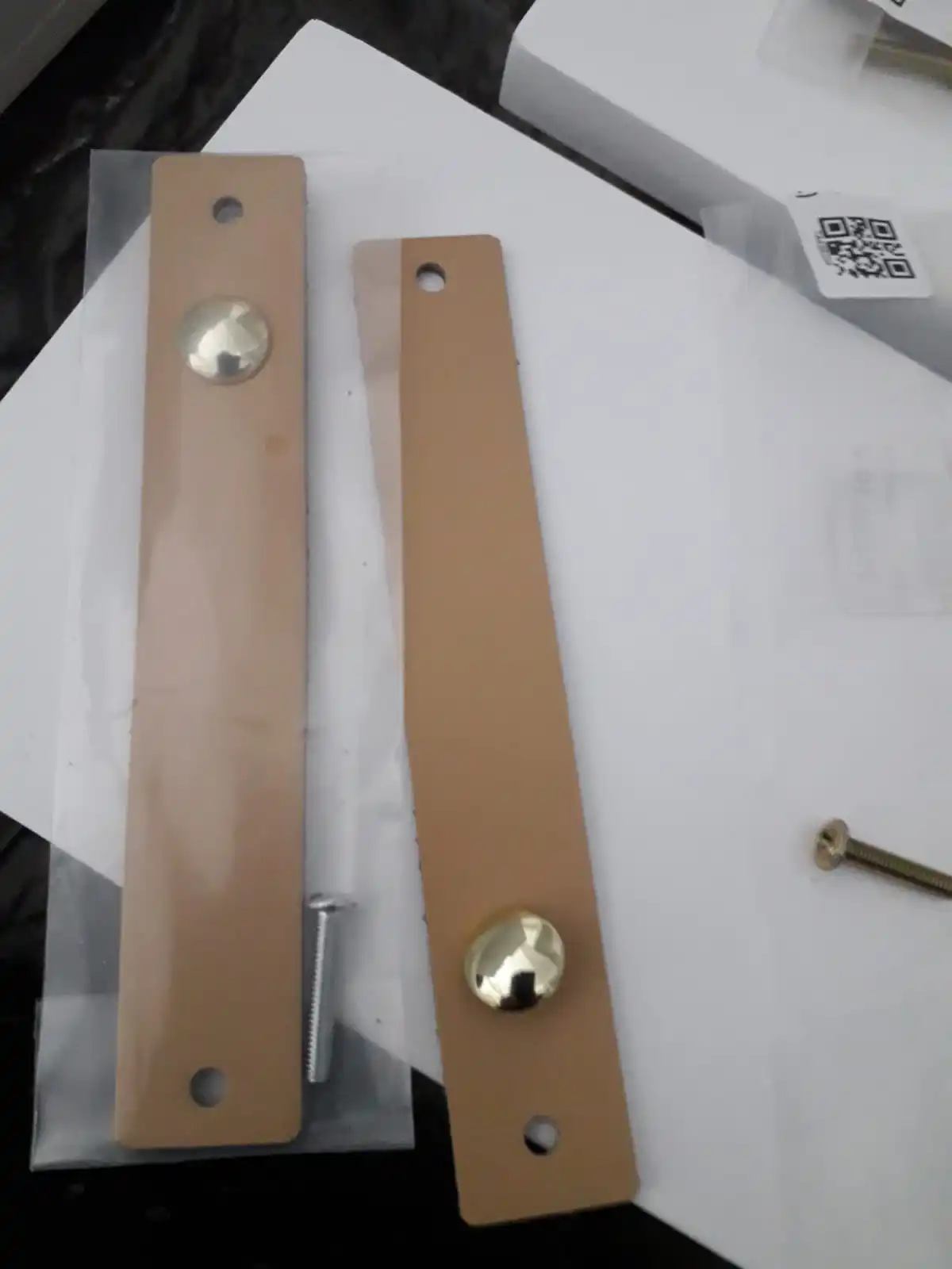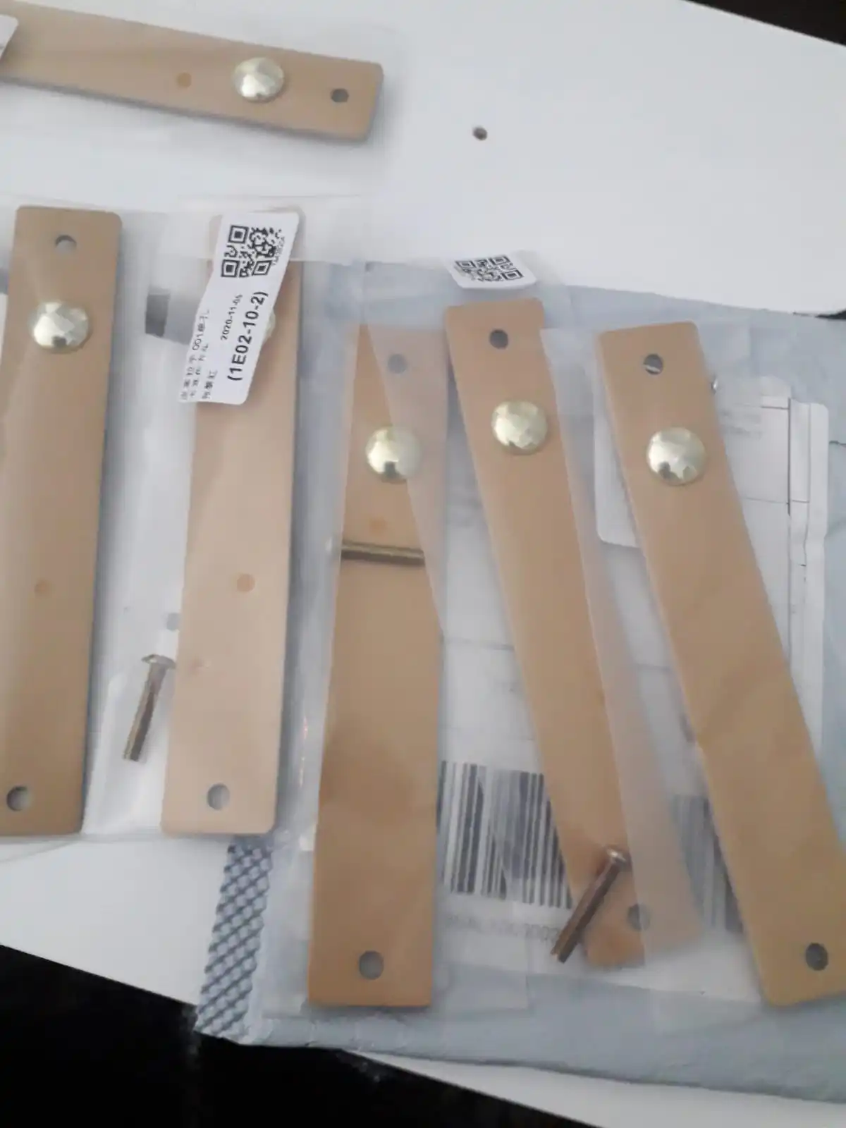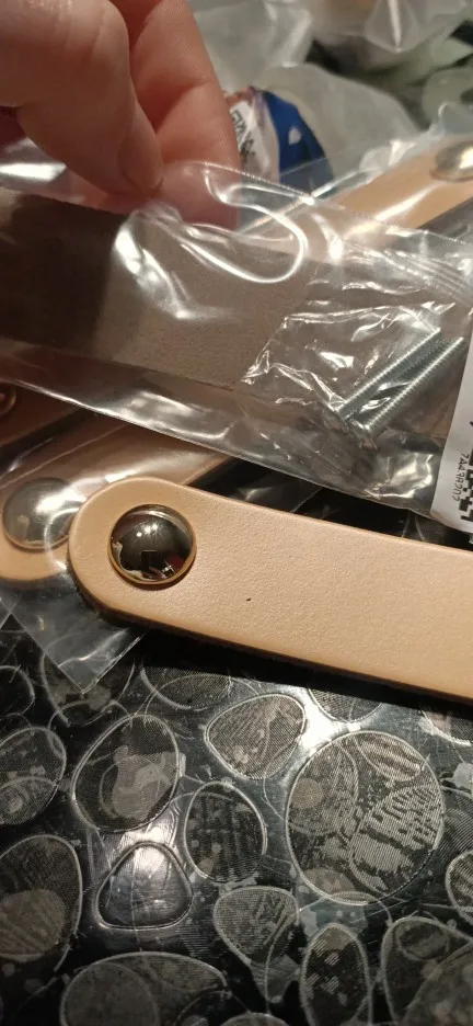 Отличная цена за такое хорошее качество, на 100% соответствуют фото, выглядят дороже чем стоят, каждая ручка в отдельной упаковке, натуральная кожа (прессованная). Единственное винты которые с обратной стороны не все одинаково цвета, в целом не смущает.