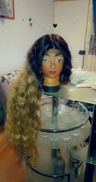 Выглядит как настоящие волосы моей сестры! Это так естественно! Мне нравится! Он толстый, не блестящий в этом дешевом парике. Я думаю, что мы будем использовать его часто.