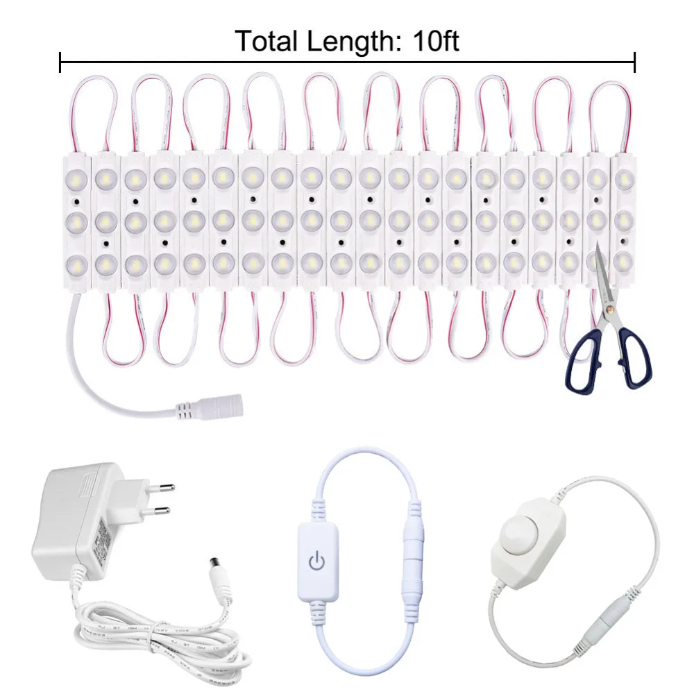 Высокая яркость Модный зеркальный светильник с регулируемой яркостью и 60 светодиодами (20x3LED)Белый светильник 6000K ~ 6500K для обеспечения профессионального цветового корректного светильник ing,Придавая Вам четкий вид и получая более изысканный макияж. Многократное применение Эти зеркальные лампы для макияжа являются водонепроницаемыми. Идеально подходит для гостиной, ванной комнаты с зеркалом-передним освещением, росписи, туалетного столика и художественного дисплея или домашнего использования, выбирайте мудро там, где вы хотели бы ваши огни. Умный сенсорный диммер Поставляется с умным сенсорным диммером, сенсорным для регулировки яркости и выключения/включения. Идеальное, доступное освещенное настенное зеркало, которое можно использовать ежедневно при нанесении макияжа, фотографировании внешности макияжа и даже записи учебников по макияжу. Простая установка Нет стен или отверстий для сверления. Нет необходимости в сборке или электропроводке, Просто прикрепите эти светодиодные лампы к стене, зеркалу или зеркальной раме, и вам будет хорошо. Красивый вид Этот светодиодный туалетный светильник красивый, очень яркий и шикарный. Идеально подходит для вашего косметического зеркала. Идеальное решение для вашего поиска, чтобы добавить лучшее освещение для вашего столик для макияжа. Характеристики: Тип: ультра яркий светильник для макияжа Количество: 1 шт. Материал: ПВХ Цвет: как показано Вилка: ЕС/США Напряжение: DC12V Мощность: 1,8 W / 3LED/группа Посылка: 1 * Ультра яркий светильник для макияжа 1 * штекер 1 * диммер