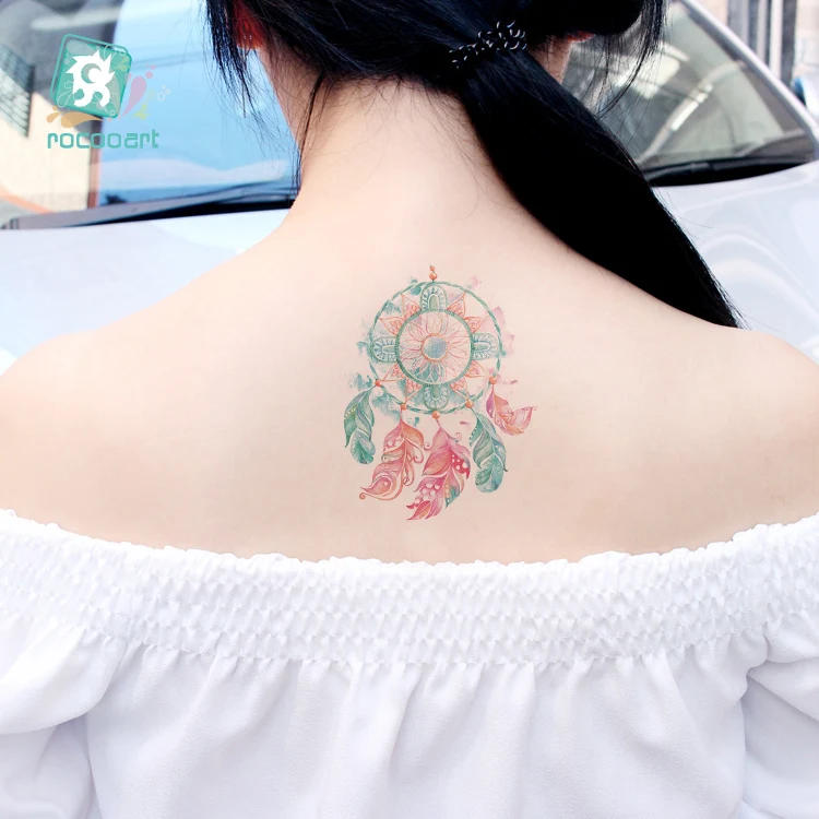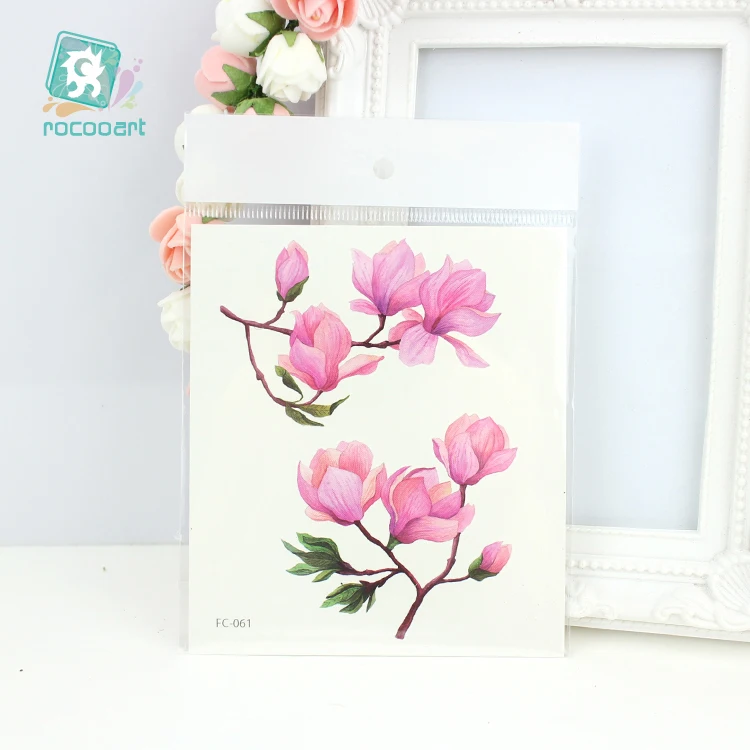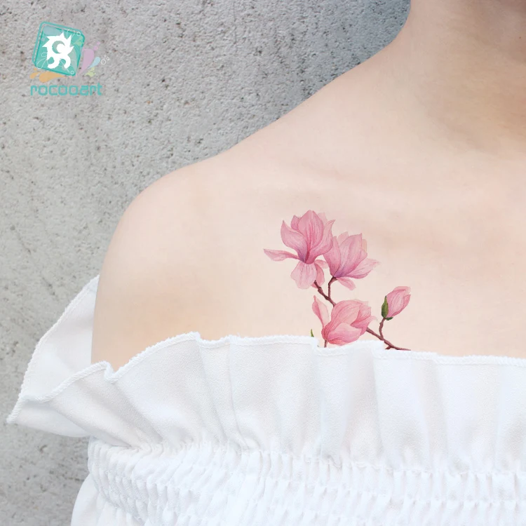 Rocooart, 1 лист, цветок, временная татуировка, наклейка для женщин, персиковый цвет, дизайн, сексуальная ключица, рука, водостойкие поддельные татуировки