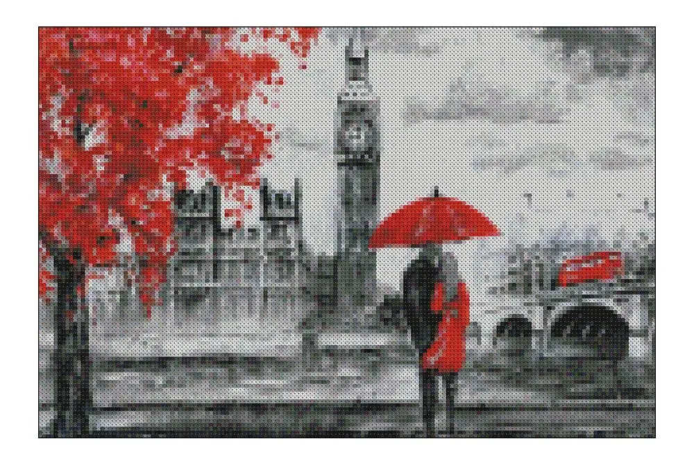 Красный зонтик с изображением листьев парная Алмазная картина сценическая Круглая Полная дрель DIY мозаика вышивка 5D Вышивка крестиком Лондон архитектура