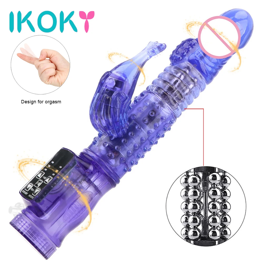 Вращающиеся шарики кролик вибратор для женщин фаллоимитатор и анальный Штепсель вагинальный клиторальный стимулятор эротические продукты инструмент для пары секс-игрушка для взрослых 18