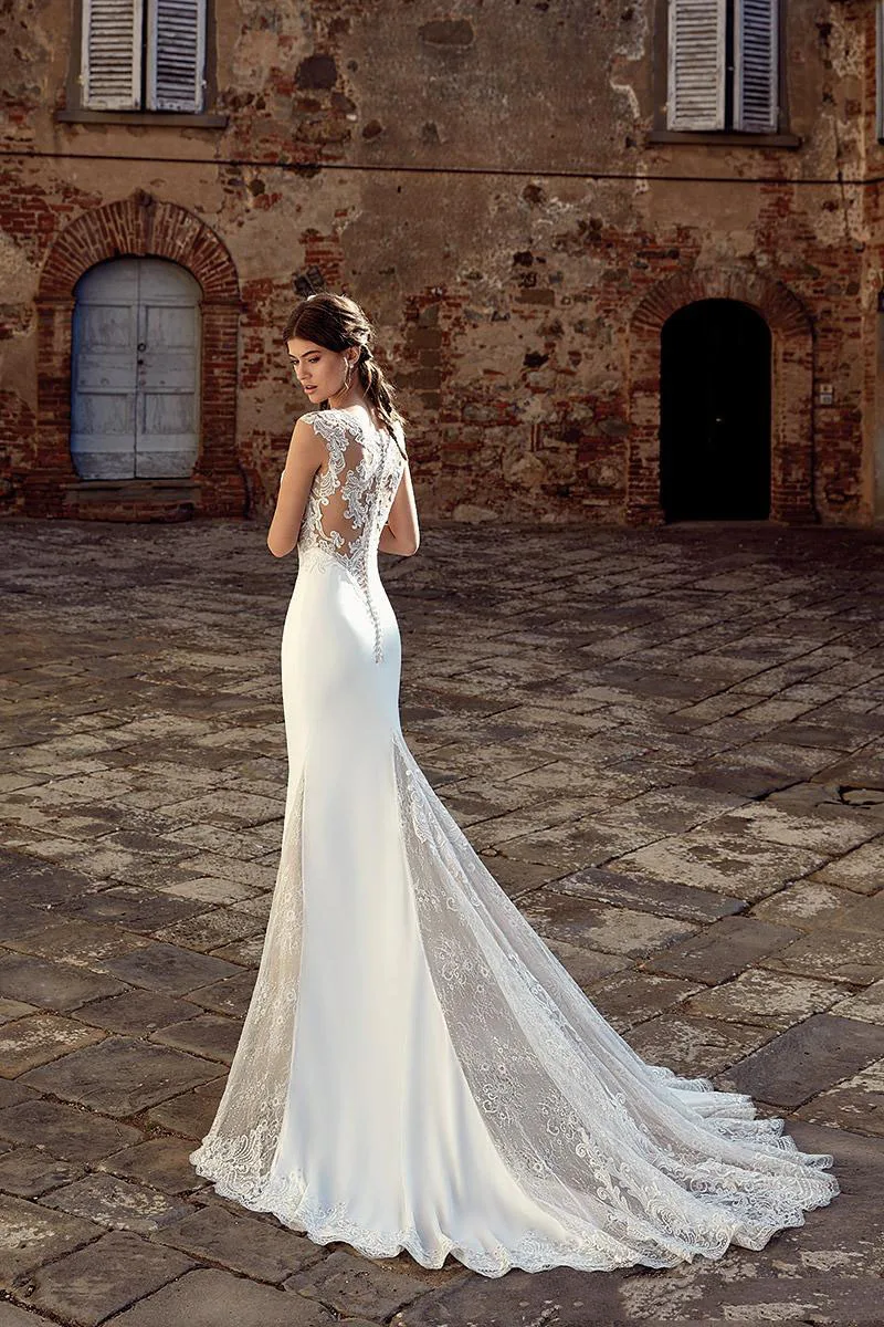 Женское атласное свадебное платье с V-образным вырезом и кружевной аппликацией