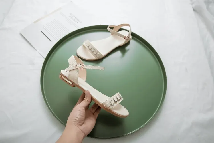 Женские босоножки на плоской подошве, Сандалии больших размеров 9, 10, 11, 12, 13, 14, 15, с хрустальным ремешком и пряжкой, лето женская обувь icon star icon star icon star icon star icon star