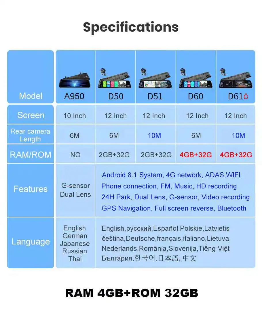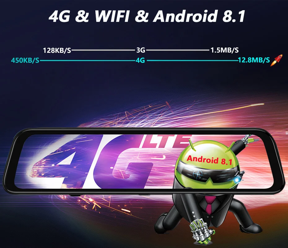 Видеорегистратор-зеркало заднего вида, 12 дюймов, 4G, сенсорный экран, Full HD 1080P, Android 8,1, Wifi, GPS-навигация, видеокамера