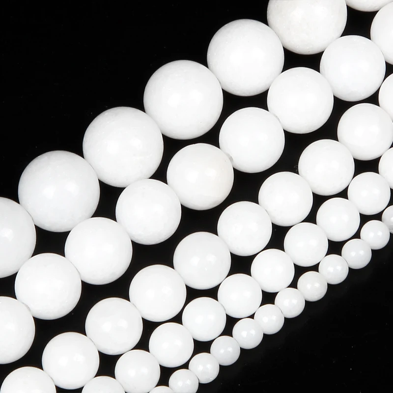 Бусины из натурального камня, белые осевые бусины, круглые бусины россыпью для изготовления ювелирных изделий, рукоделия, аксессуары для браслетов сделай сам, бусины 4-12 мм