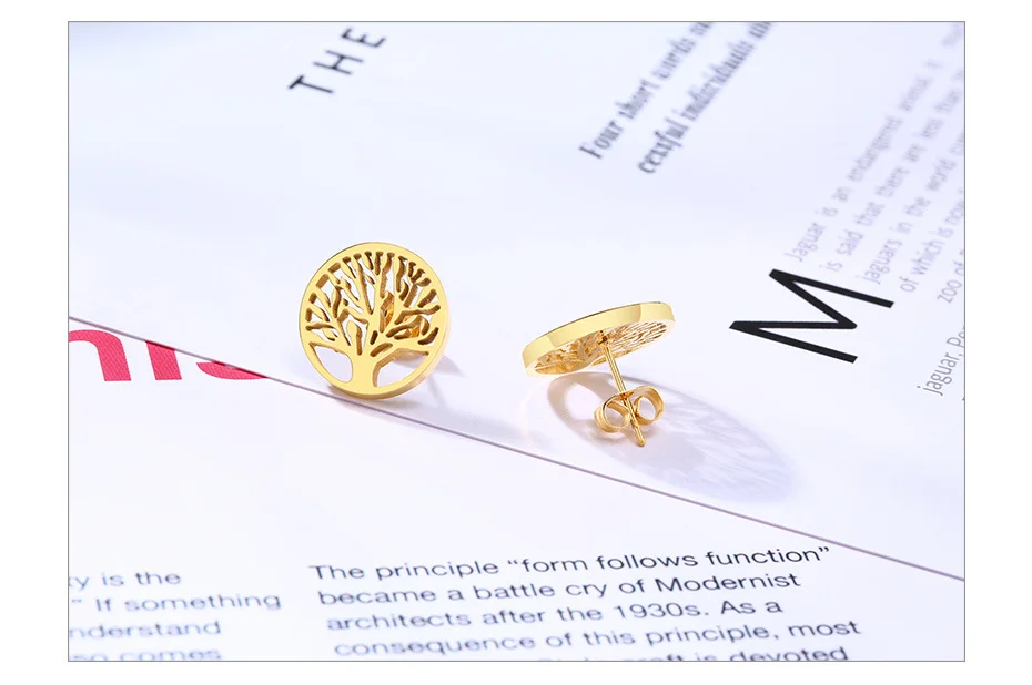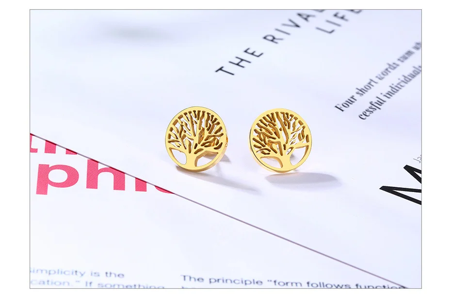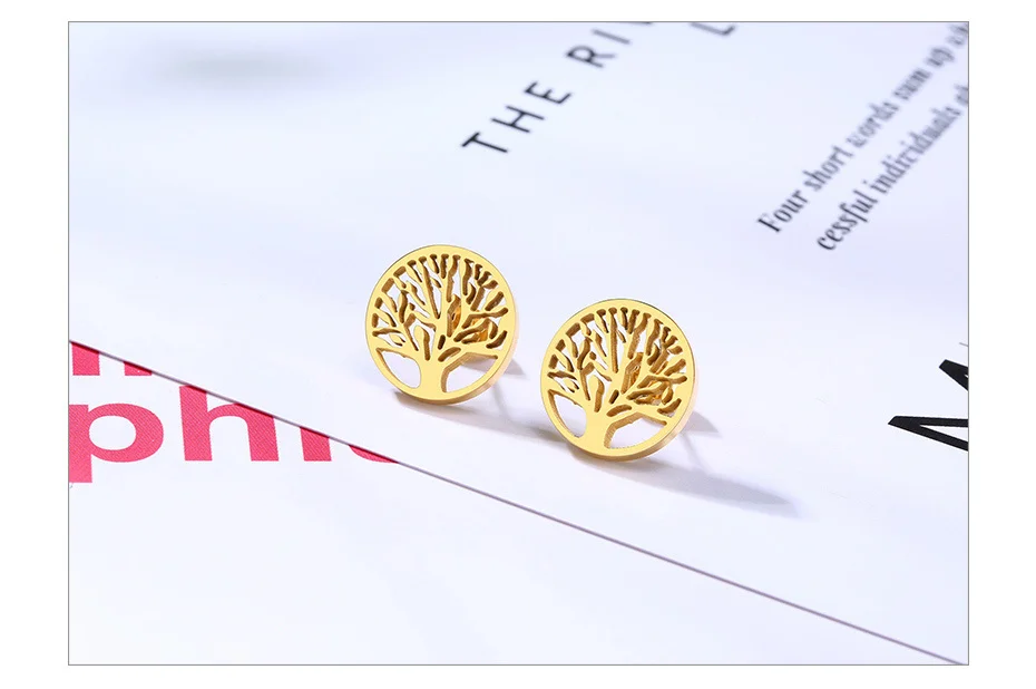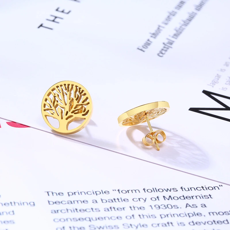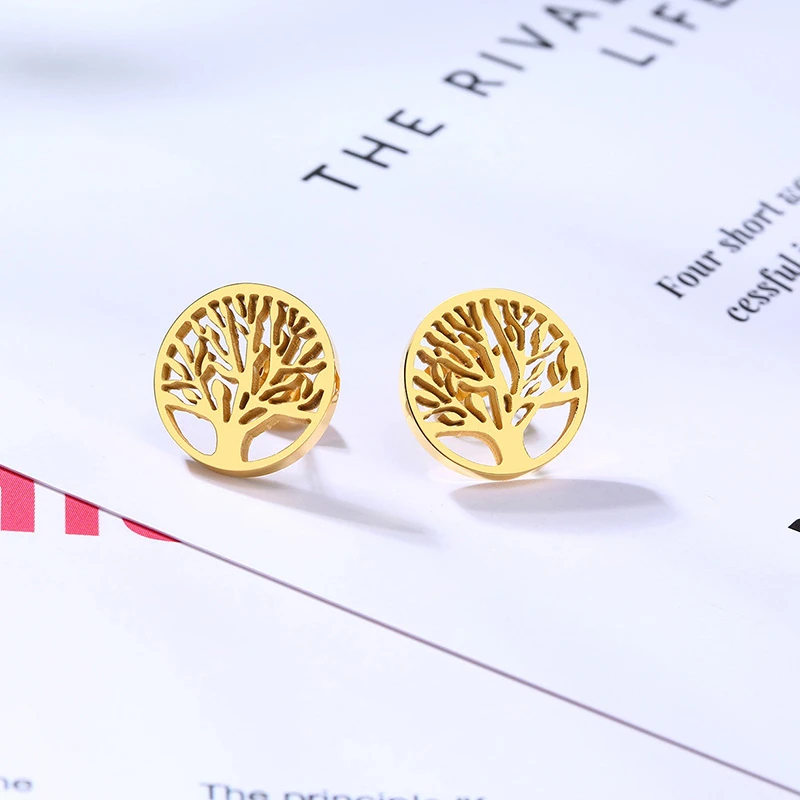 Золото Семья гвоздики Дерево Серьги Дерево жизни, серьги в Нержавею...