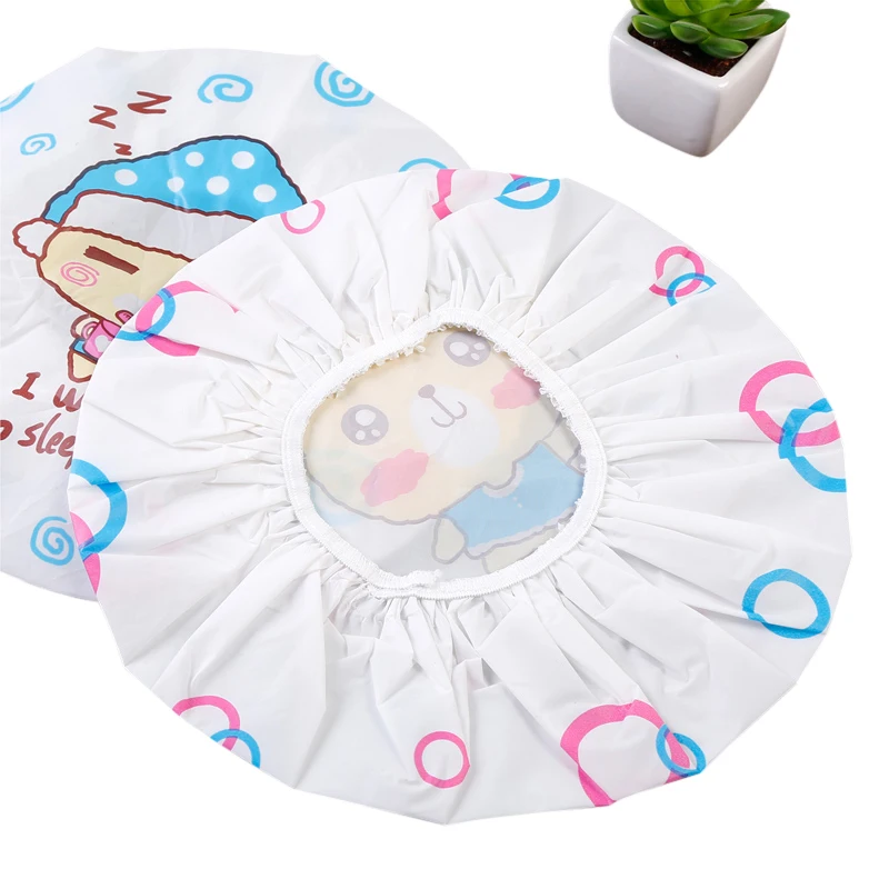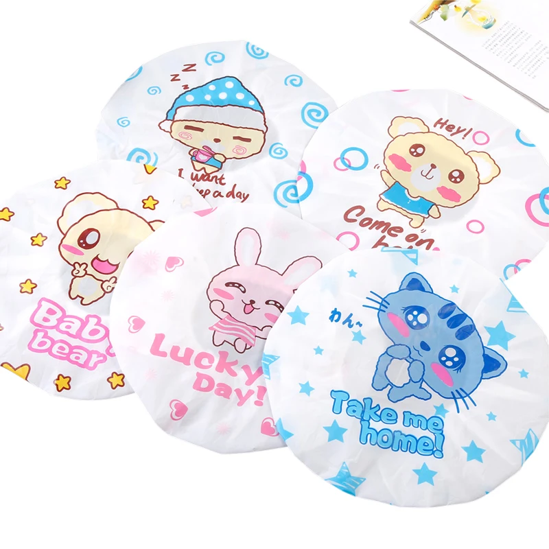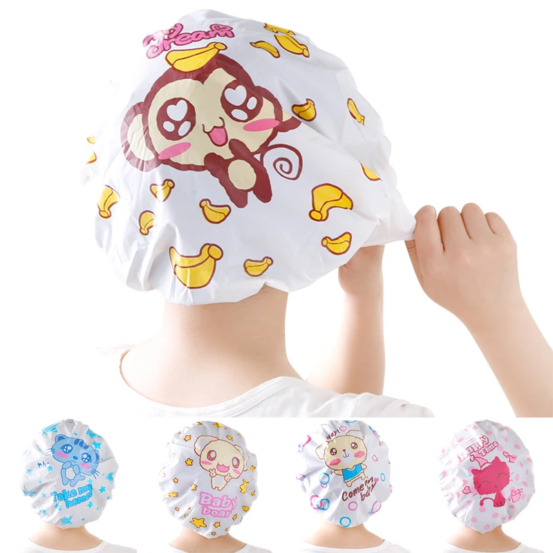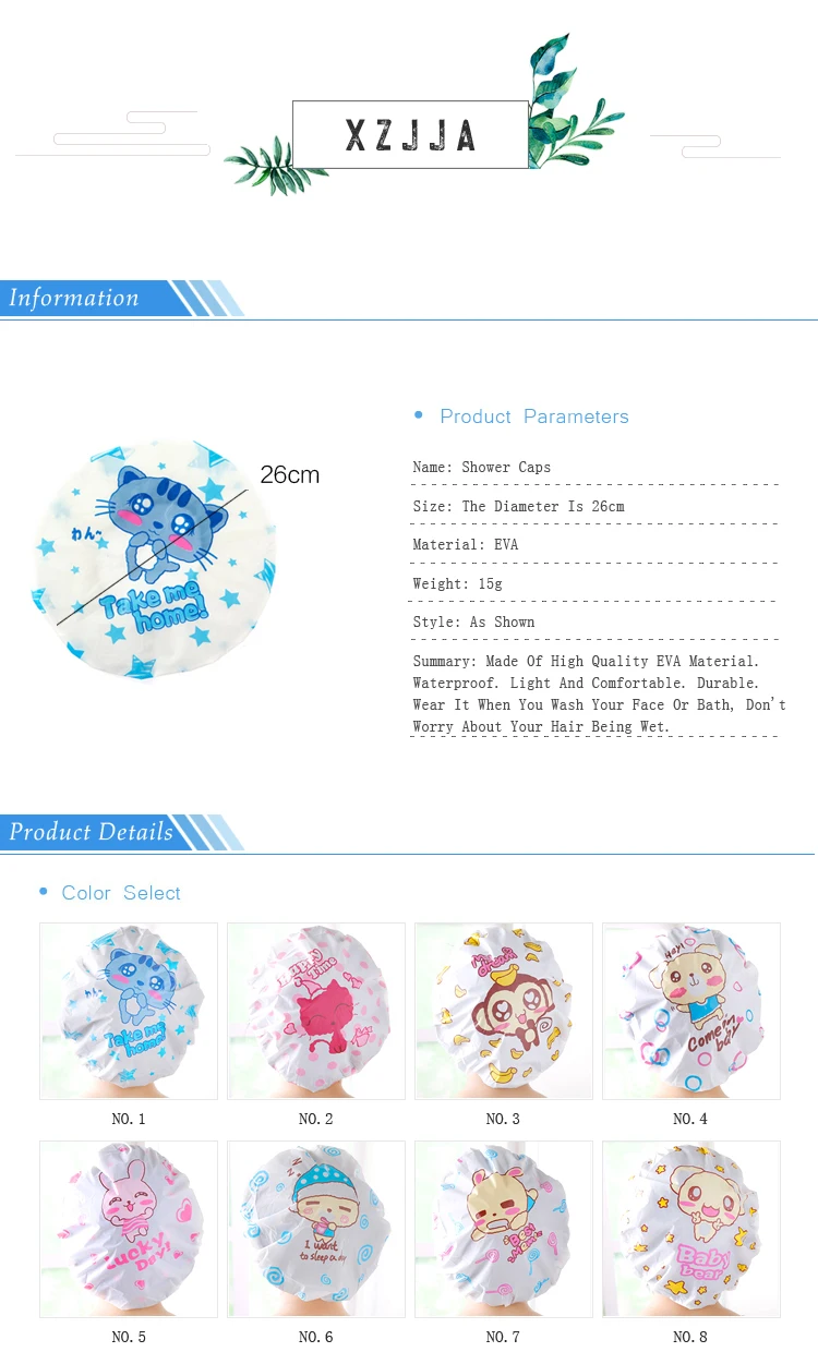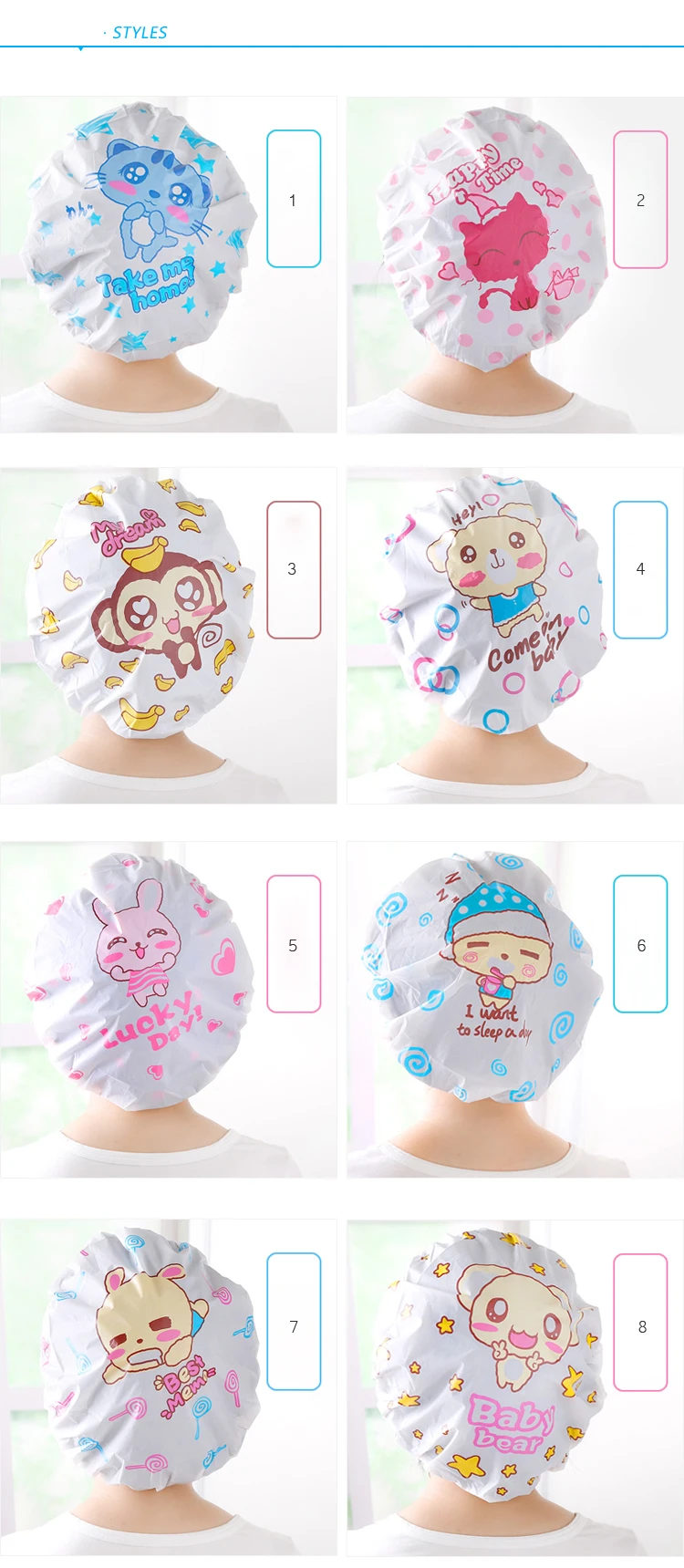 Характеристики: милая мультяшная водонепроницаемая шапочка для душа, эластичная лента по краям, Бытовые аксессуары для ванной комнаты, женская шапочка для душа с защитой от волос, удобная и практичная.