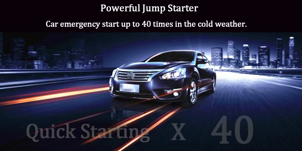 Автомобильный стартер (внешний аккумулятор) * 1Защитные зажимы (красный = Положительный; Черный = отрицательный) * 1Зарядный кабель от 1 до 3*1Инструкция на английском языке * 1Ящик для инструментов * 1