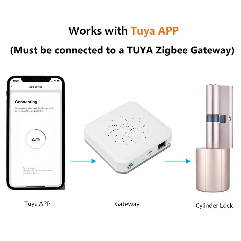 Этот цилиндр дверного замка совместим с мобильным приложением Tuya Smart /Smart Life. Требуется сопряжение сШлюз Tuya ZigBeeAsНиже. Пожалуйста, нажмите на картинку ниже, чтобы купить напрямую.