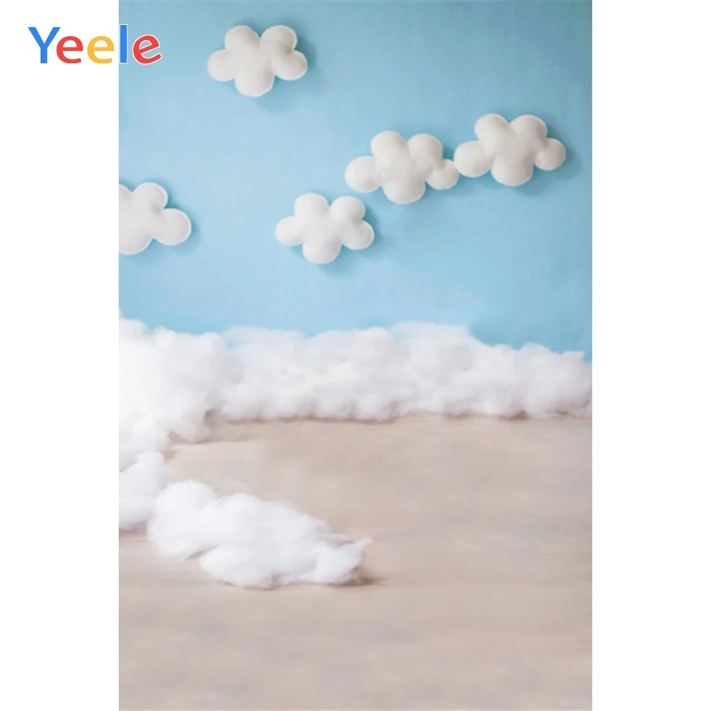 Фон для студийной фотосъемки с голубыми стенками, белыми хлопковыми облаками и полом для фотосъемки детей