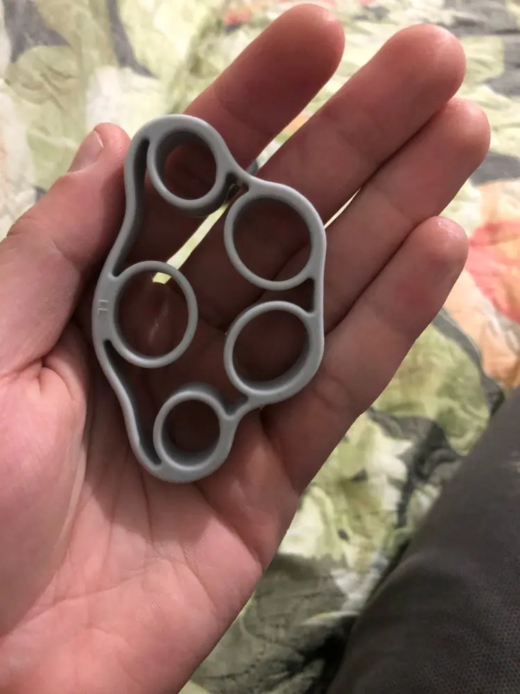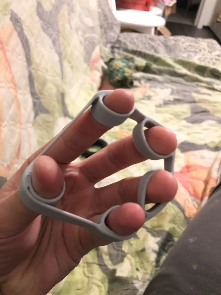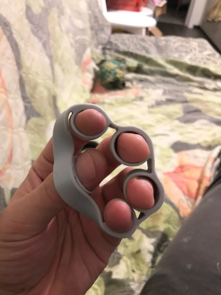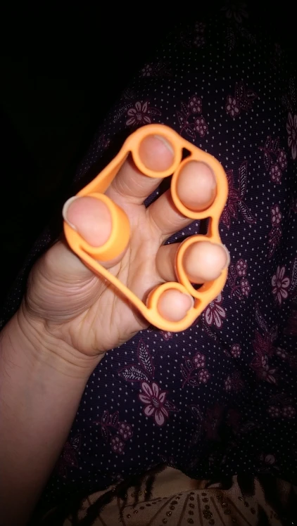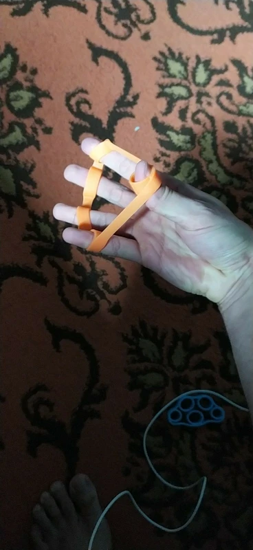 Отрезал себе указательный палец, его пришили. Заказал этот эспандер чтобы тренировать сухожилия-разгибатели после операции. Чуть жестковат, но думаю привыкну.