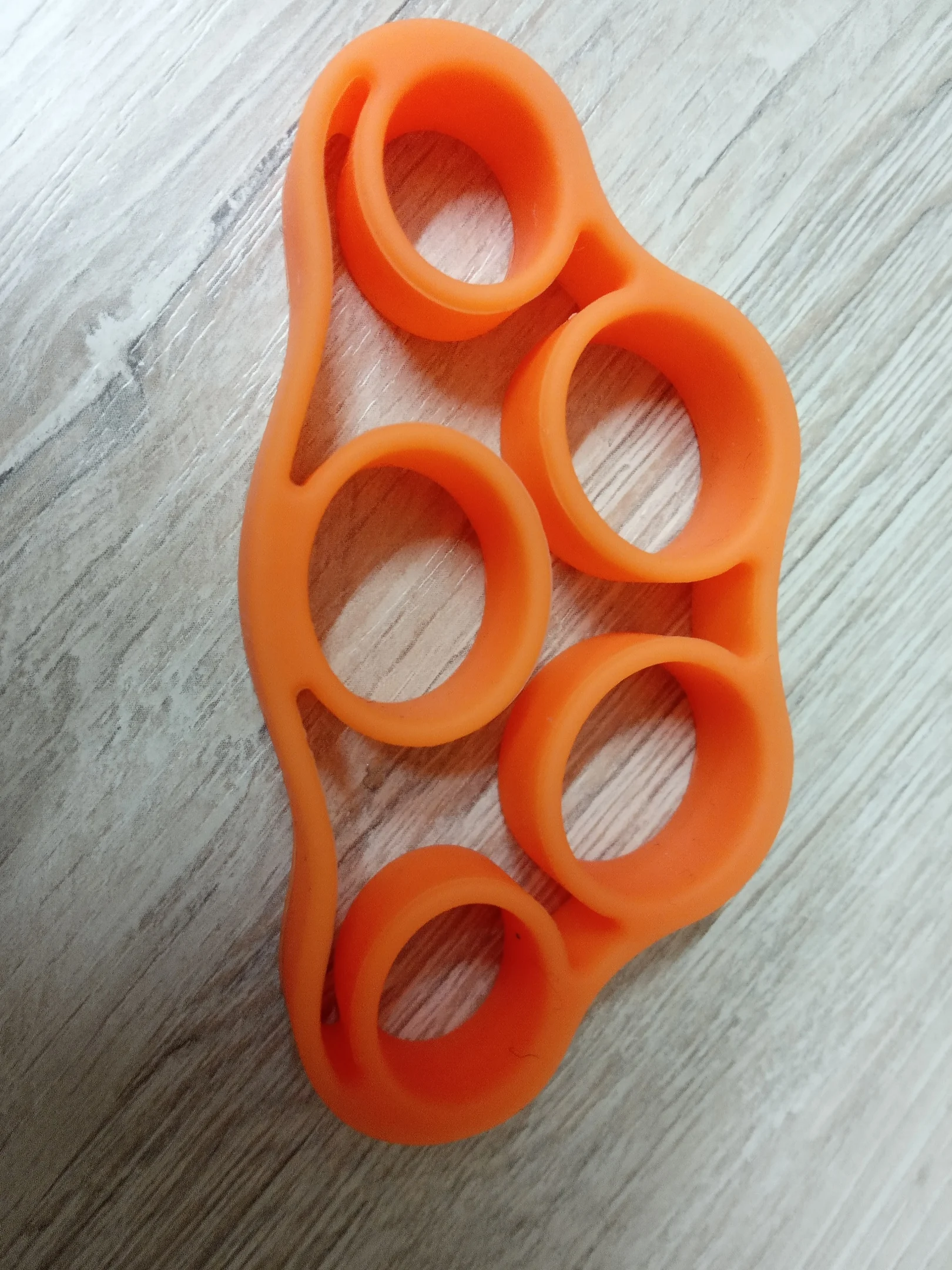 Хороший тренажёр, помогает разработать силу пальцев. Лучше заказать несколько разных таких резинок, чтобы подобрать то, что подходит вам по силе. Через некоторое время привыкаешь к нему и хочется взять потуже. ))) Продавец хороший, доставили все быстро, товар соответствует описанию.