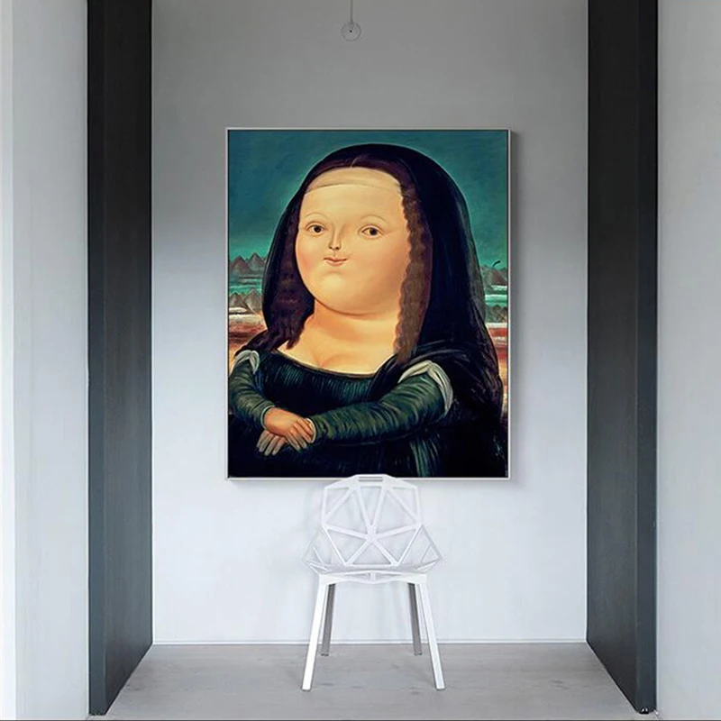 Забавный мультфильм Толстая Мона Лиза живопись постеры печатная картина настенное искусство для гостиной спальни скандинавский Куадрос салон панно Декор