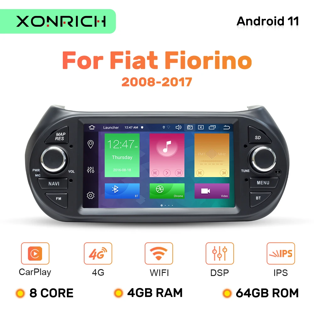 Мультимедийный стерео дисплей IPS DSP 4 Гб 64 Гб 1Din Android 11 автомобильный проигрыватель с радио и GPS дюйма для FIAT Fiorino Qubo, Citroen Nemo, Peugeot Bipper, Wi-Fi