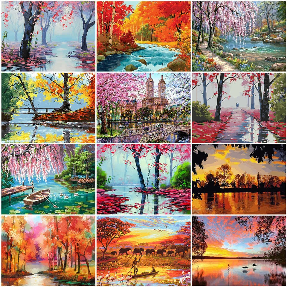 Картина AZQSD по номерам, озеро сделай сам, рама, украшение для дома, картины по номерам, пейзаж, ручная роспись, подарок, акриловая краска 50x40 см