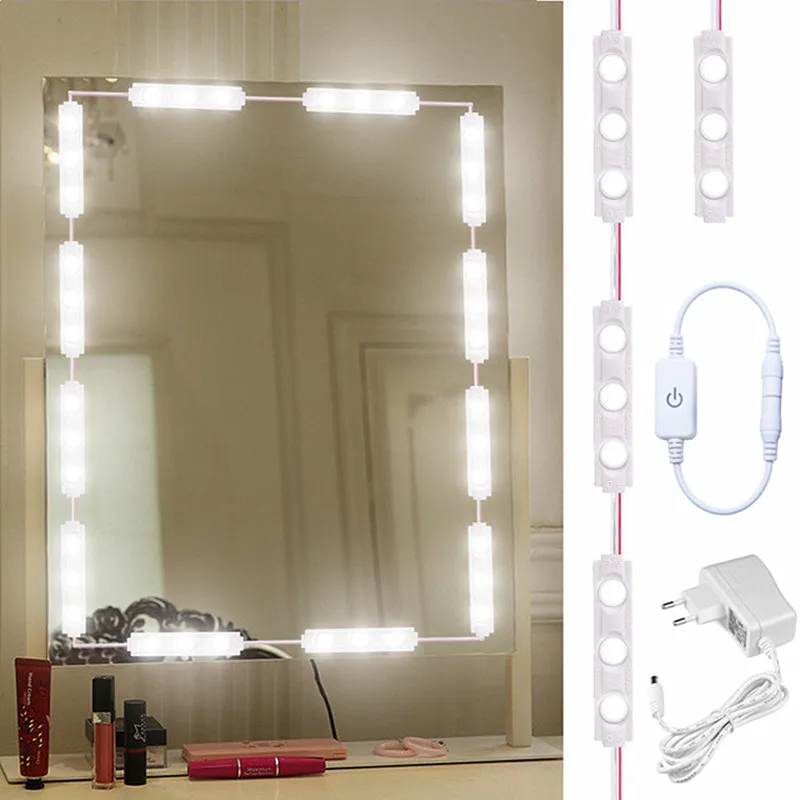 Высокая яркость Модное Освещение зеркала с регулируемой яркостью с 60 светодиодами (20x3 светодиодами),Белый светильник 6000K ~ 6500K для профессионального освещения,Придает вам четкий вид и получит более изысканный макияж. Множественное применение Эти зеркальные светильники для макияжа водонепроницаемые. Идеально подходит для гостиной, зеркала в ванной-переднее освещение, Настенная роспись, туалетный столик и художественная витрина или для домашнего использования, выбирайте с умом, где вы хотите свои светильники. Умный сенсорный диммер Поставляется с умным сенсорным диммером, сенсорным прикосновением для регулировки яркости и выключения/включения. Идеальное, доступное освещенное настенное зеркало, которое вы можете использовать ежедневно во время нанесения макияжа, фотографирования внешнего вида макияжа и даже записи учебных пособий по макияжу. Простая установка Нет сверления стен или отверстий. Сборка или электрическая проводка не требуется. Просто крепко приклейте эти светодиодные светильники к стене, зеркалу или раме зеркала, и все будет в порядке. Красивый вид Этот светодиодный светильник красивый, очень яркий и шикарный. Идеально подходит для вашего косметического зеркала. Идеальное решение для вашего поиска, чтобы добавить лучшего освещения для вашего столик для макияжа. Характеристики: Тип: сверхъяркий светильник для макияжа Количество: 1 шт. Материал: ПВХ Цвет: как показано Вилка: ЕС/США Напряжение: 12 В постоянного тока Мощность: 1,8 Вт/3 светодиода/группа Посылка: 1 * Ультра ярсветильник для макияжа 1 штекер 1 * диммер