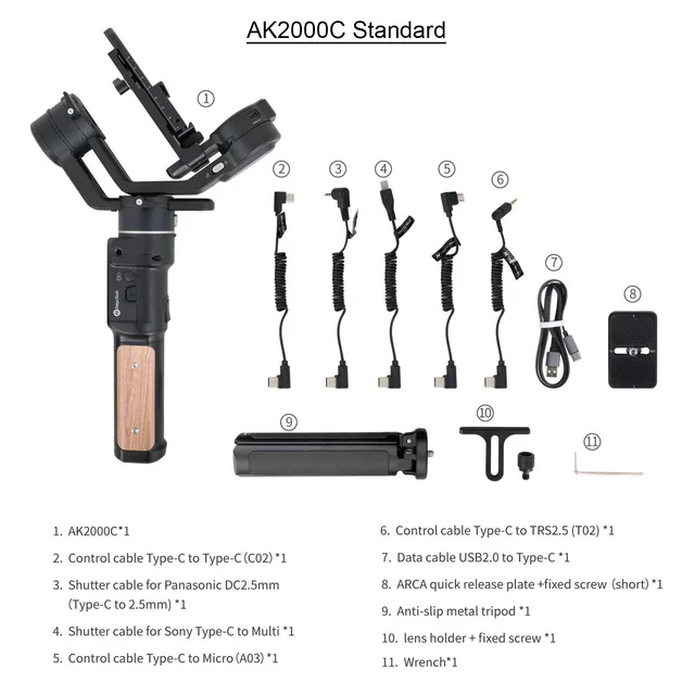 3-осевой шарнирный стабилизатор FeiyuTech AK2000SAK2000C, стабилизатор Vlog Gimbal LCDTouchpanel, универсальная ручка, Совместимость с DSLR-камерами