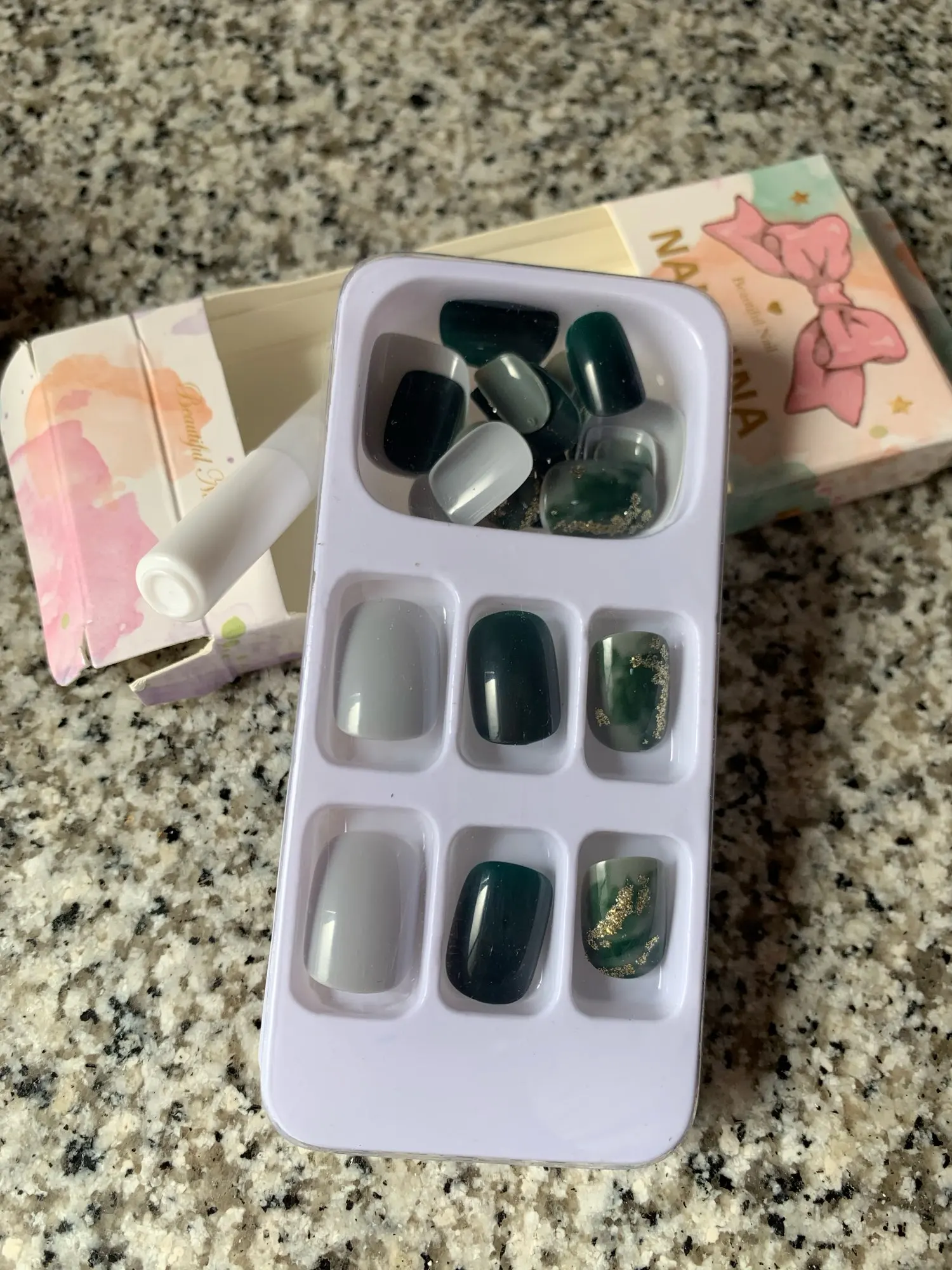 3. Нанесите клей на заднюю часть накладного наконечника или Наклейте на ногти двухсторонними наклейками.