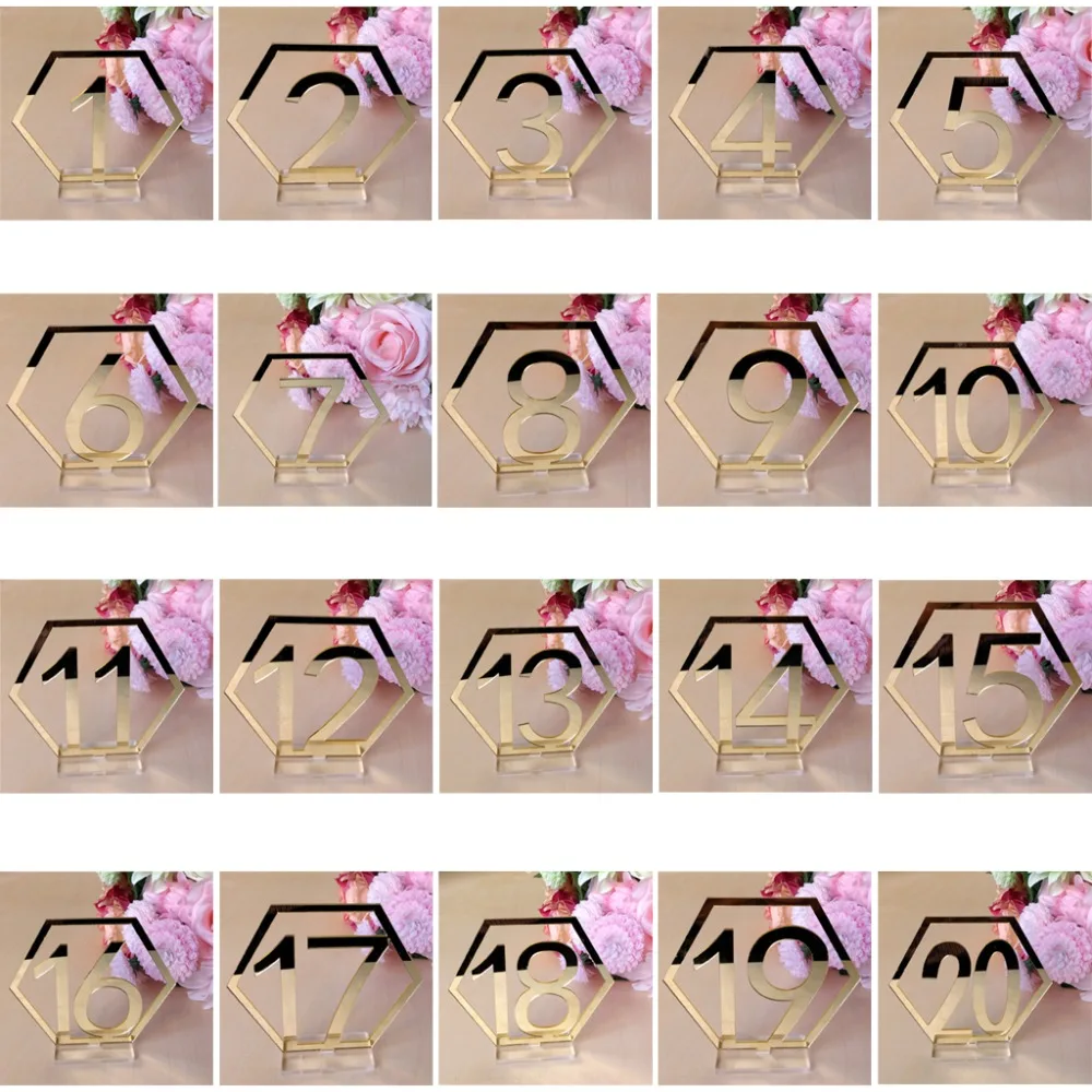 1-20Numbers акриловые знаки Свадебные шестигранные настольные номера пластиковые настольные номера деревенские Свадебные Помолвочные сиденья цифры знак