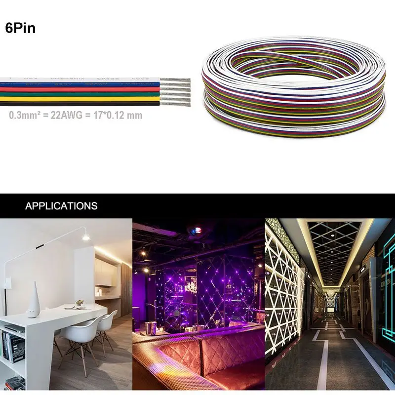 1 м 5050RGB + CCT 6-контактный кабель SM JST Соединительный кабель для светодиодной 0,3 мм 6-жильный Электрический медный провод 6-контактный провод для 5050RGB + CCT полосы света
