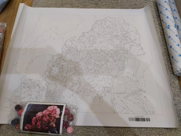 Мне нравится! Посылка быстро прибыла в Австралию. К сожалению, он был Согнут, поэтому бумага имеет морщины, я попробовал гладить бумагу перед окрашиванием, но это не поможет. Это не так подробно, как на фото продавца, но мне нравятся цвета. Я рад, что заказал на один размер больше. В упаковке было два набора цветов, которые фантастические, потому что с 1 комплектом я бы не закончить картину.