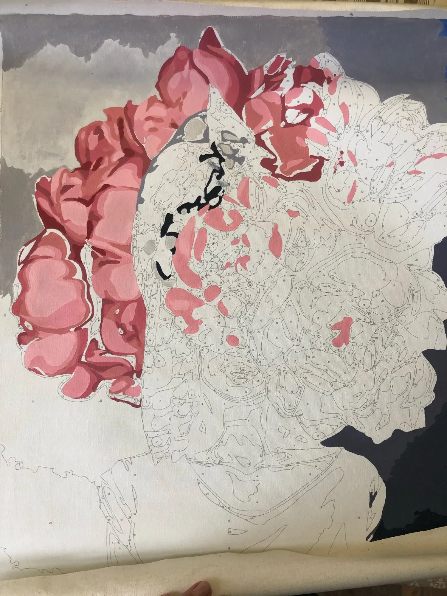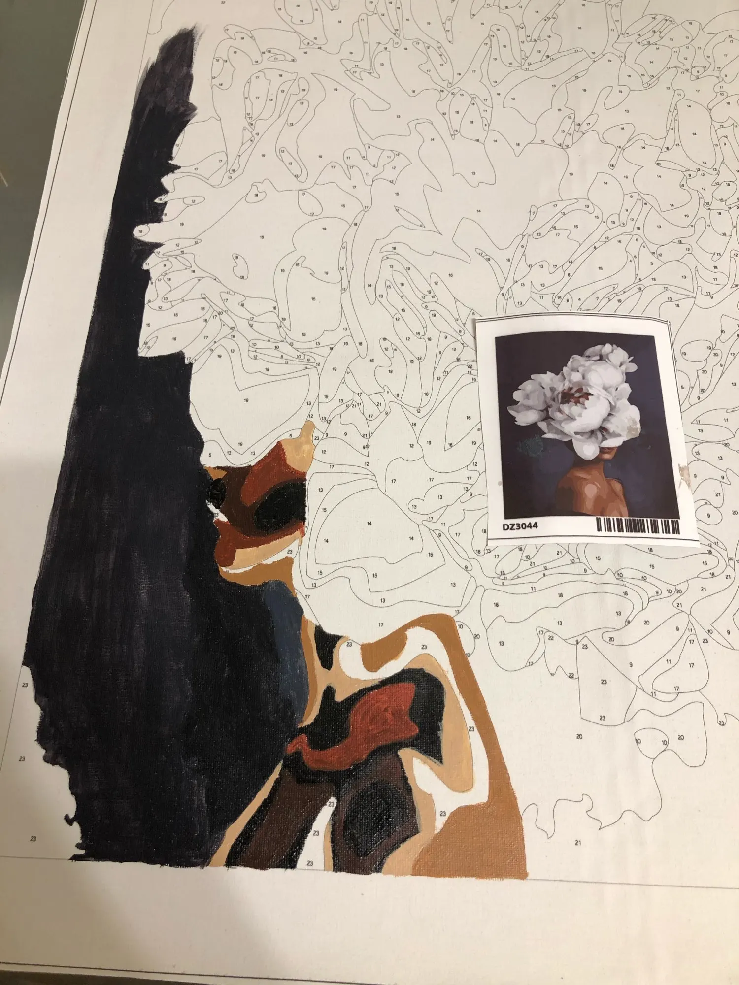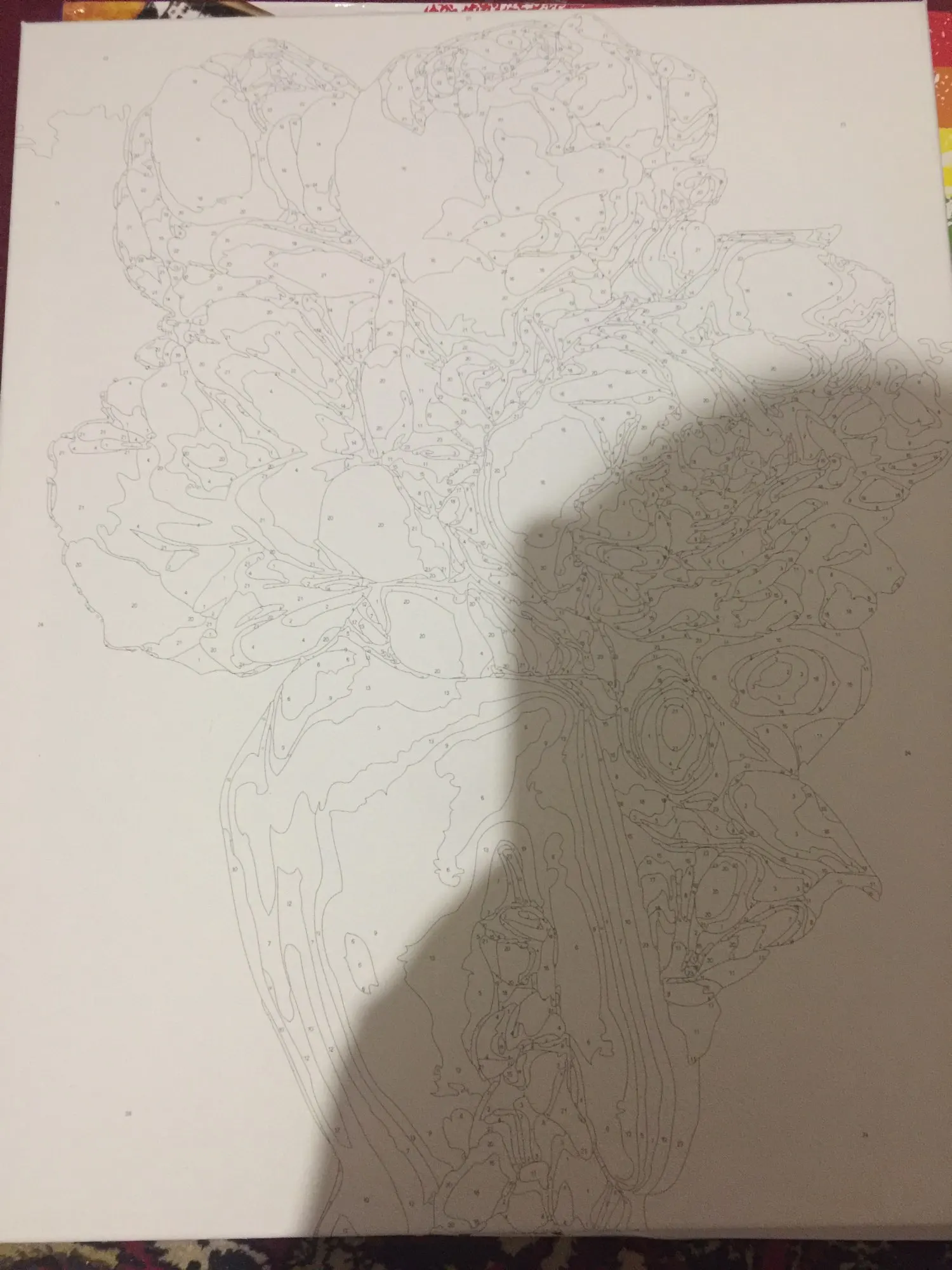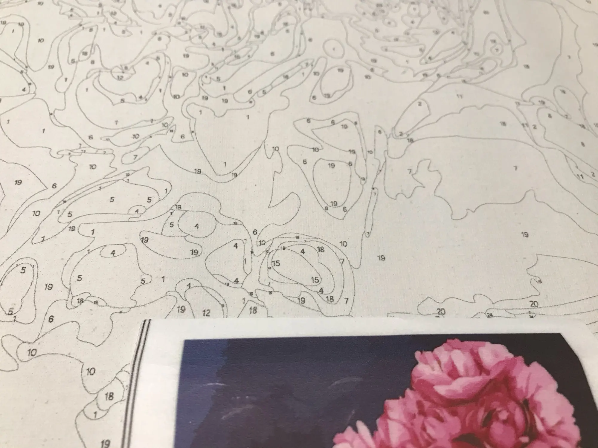 все круто на первый взгляд: холст нормальный, краски и кисти есть. но если присмотреться, то мелкие цифры почти не видно и не ясно какой цвета там нужен. сфоткала под макро, чтобы было понятнее.