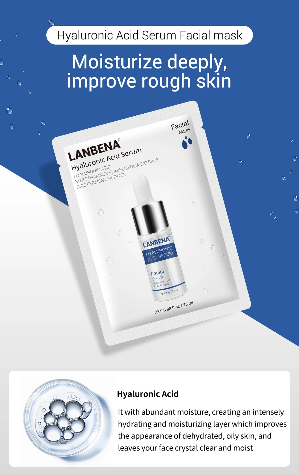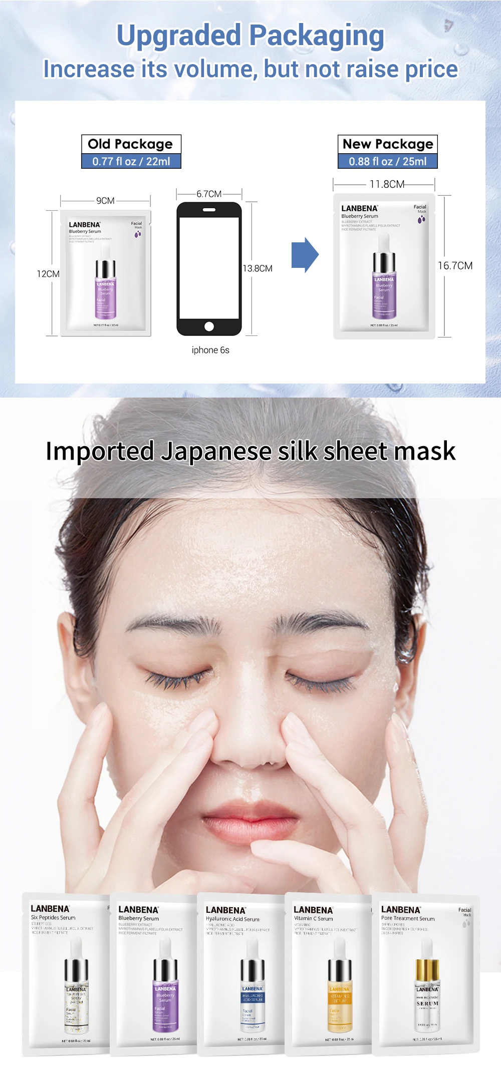 LANBENA маска для лица с гиалуроновой кислотой, маска для лица, уход за кожей, лечение пор, сыворотка VC, отбеливающая Черничное масло, контроль шести пептидов