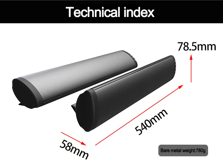 ♦Версия Bluetooth: V5.0 ♦Рабочий диапазон: 10 метров ♦Размер: 540*58*78,5 мм ♦Вес брутто: 780 г ♦Выход громкоговорителя: 10 Вт * 2 ♦Сигнал-шум: ± 80 дБ ♦Искажение: ≤ 0.5% ♦Напряжение/Емкость аккумулятора: 2000 мАч ♦Батарея зарядки Напряжение: 7,4 V ♦Воспроизведение значений времени для динамиков: 6 часов ♦Цветная коробка Вес упаковки: 1170 г ♦Тип батареи: 18650 Алюминиевый полимерный аккумулятор ♦Схема защиты: перезарядка Защита (8,40 ± 0,05) V/ ♦Защита от перегрузки (5,0 ± 0,1) V ♦Диапазон частот передачи: 2402 МГц- 2480 МГц ♦Встроенное радио: внешняя антенна ♦Радио секция: 87,5-108