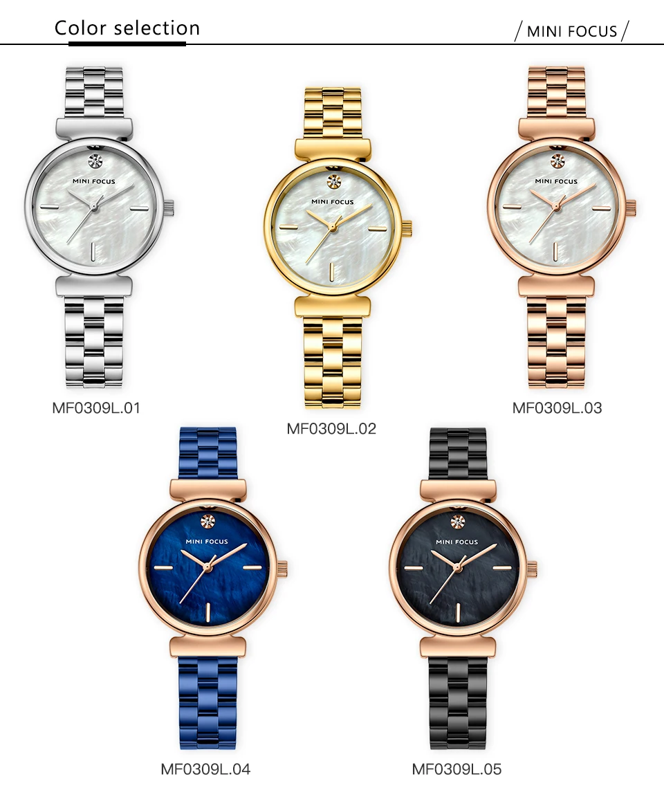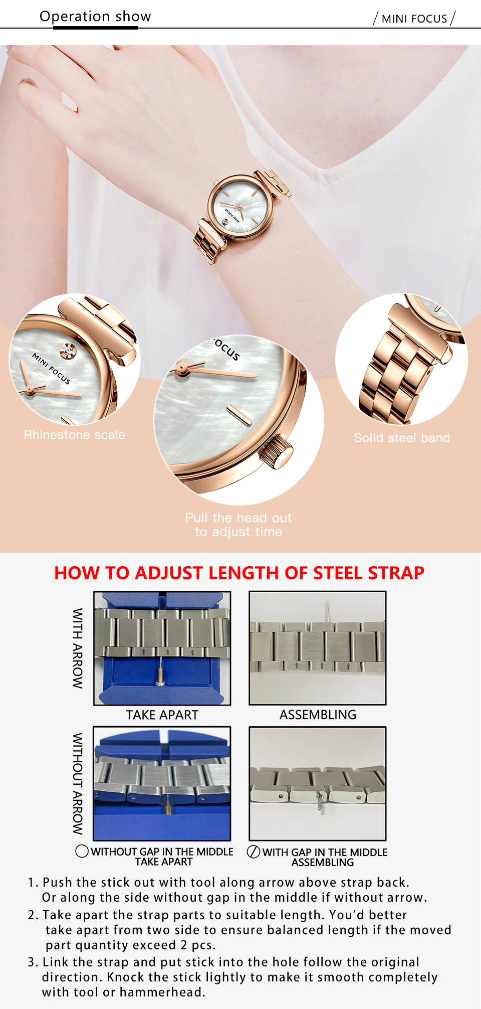 Женские наручные часы MINI FOCUS, водонепроницаемые, розовое золото, браслет из нержавеющей стали