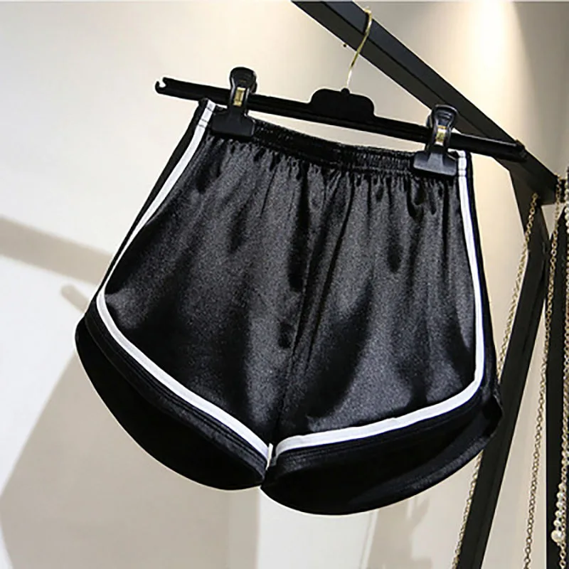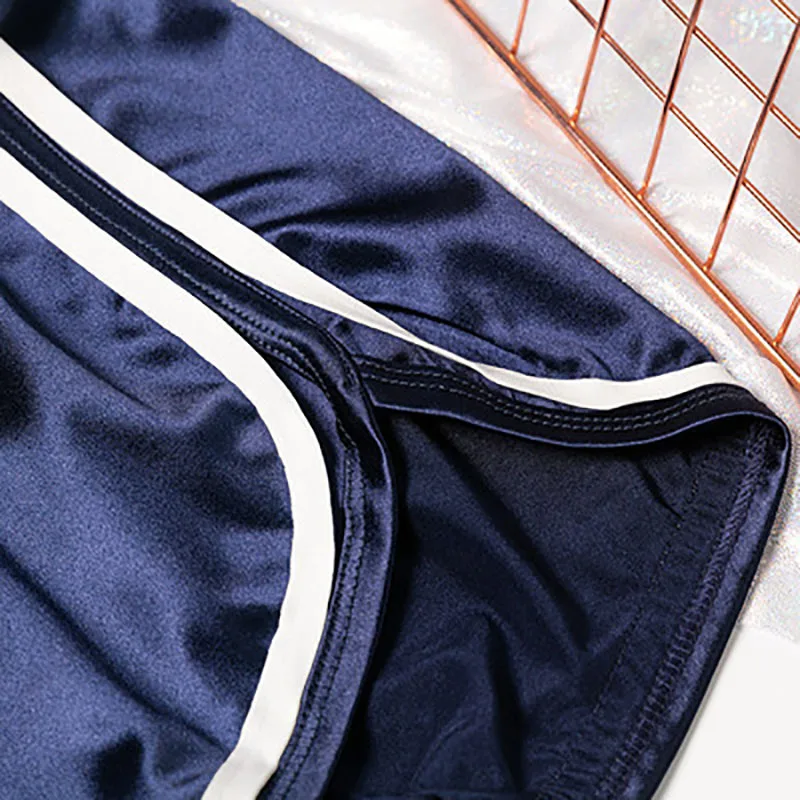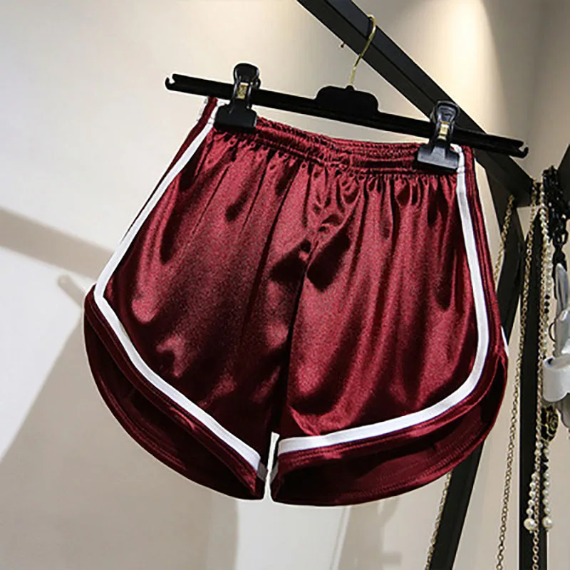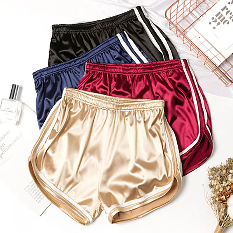 Женские атласные шорты AECU, с широкими штанинами, для бега, фитнеса, домашнее однотонное нижнее белье, блестящие штаны