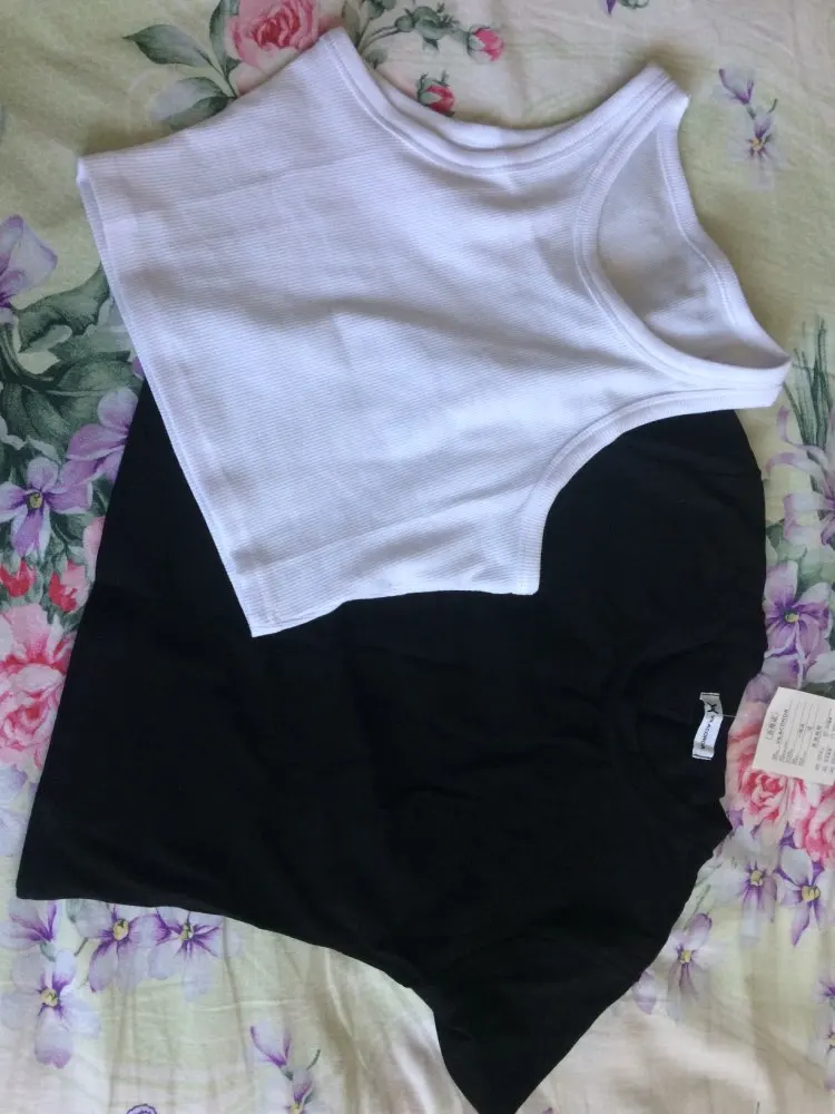 Черная блузка с подмышками, как будто сшита плохо. У меня также есть белый и белый. Удобная футболка, я ношу XS zamówilam XS и подходила.