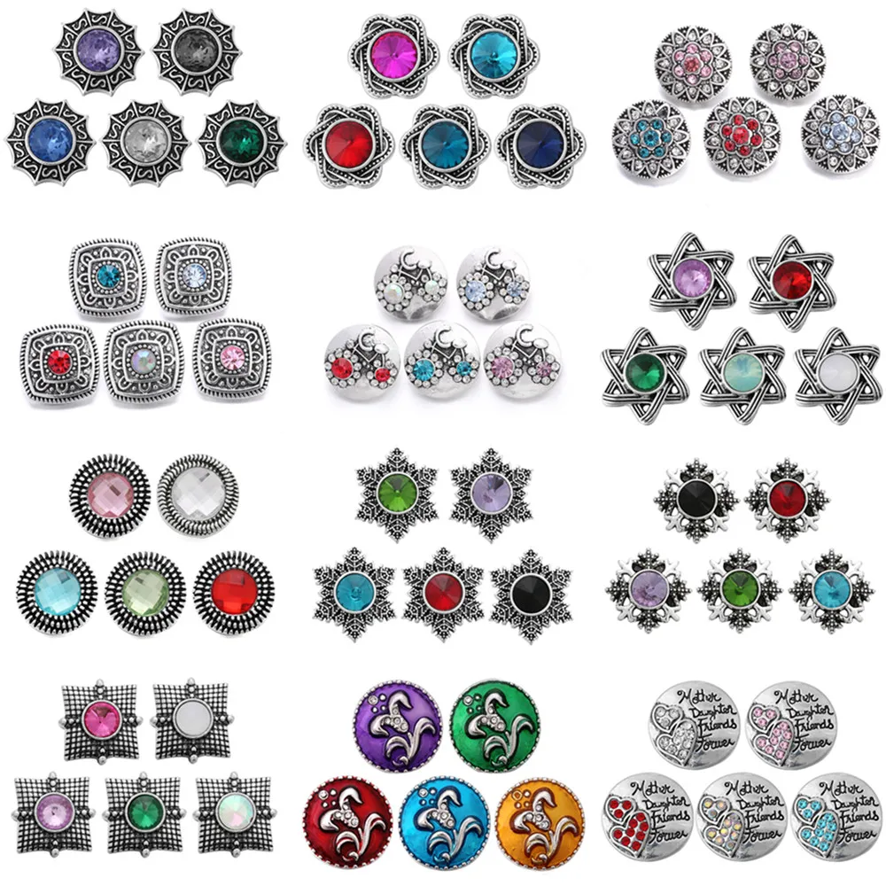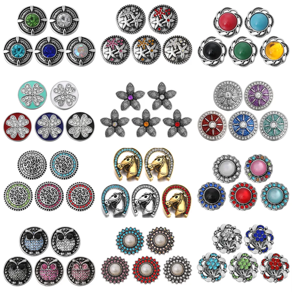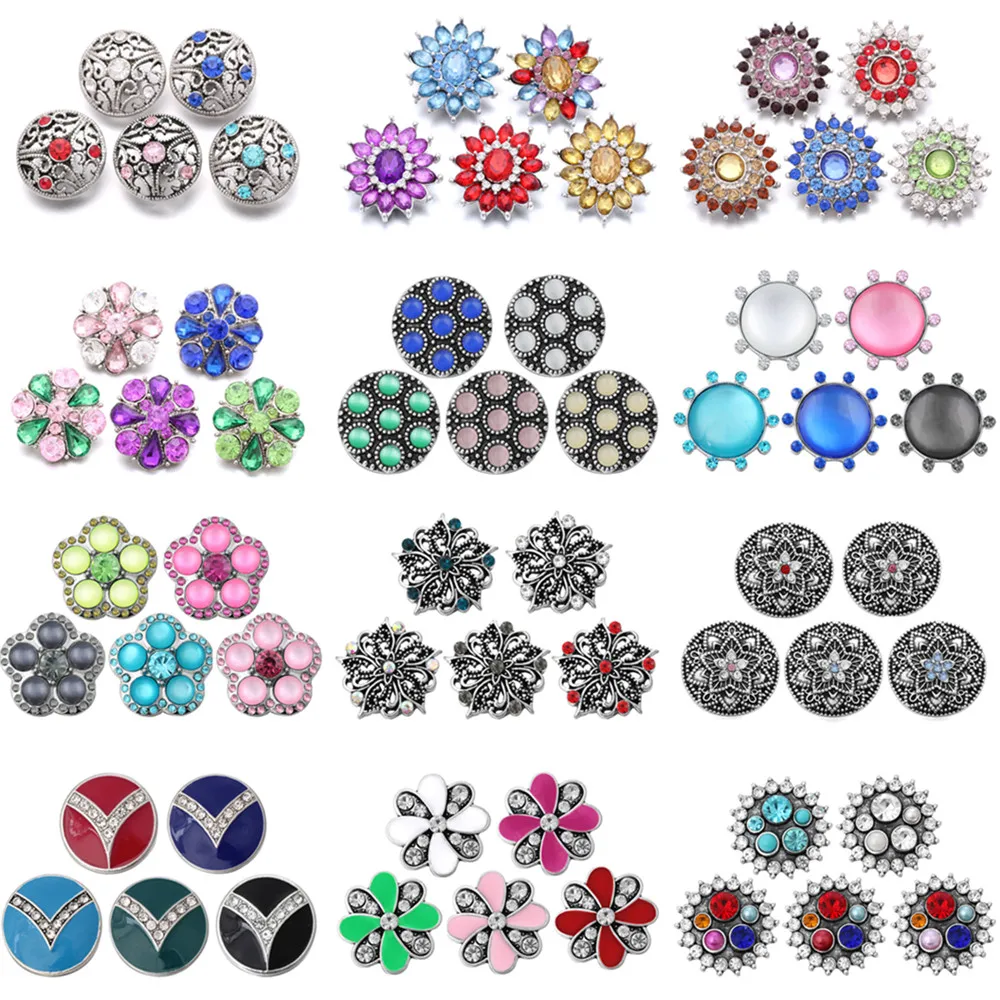 6 шт.лот оптовая продажа ювелирных изделий 18 мм кнопки смешанные Стразы Цветы металлические кнопки для браслета