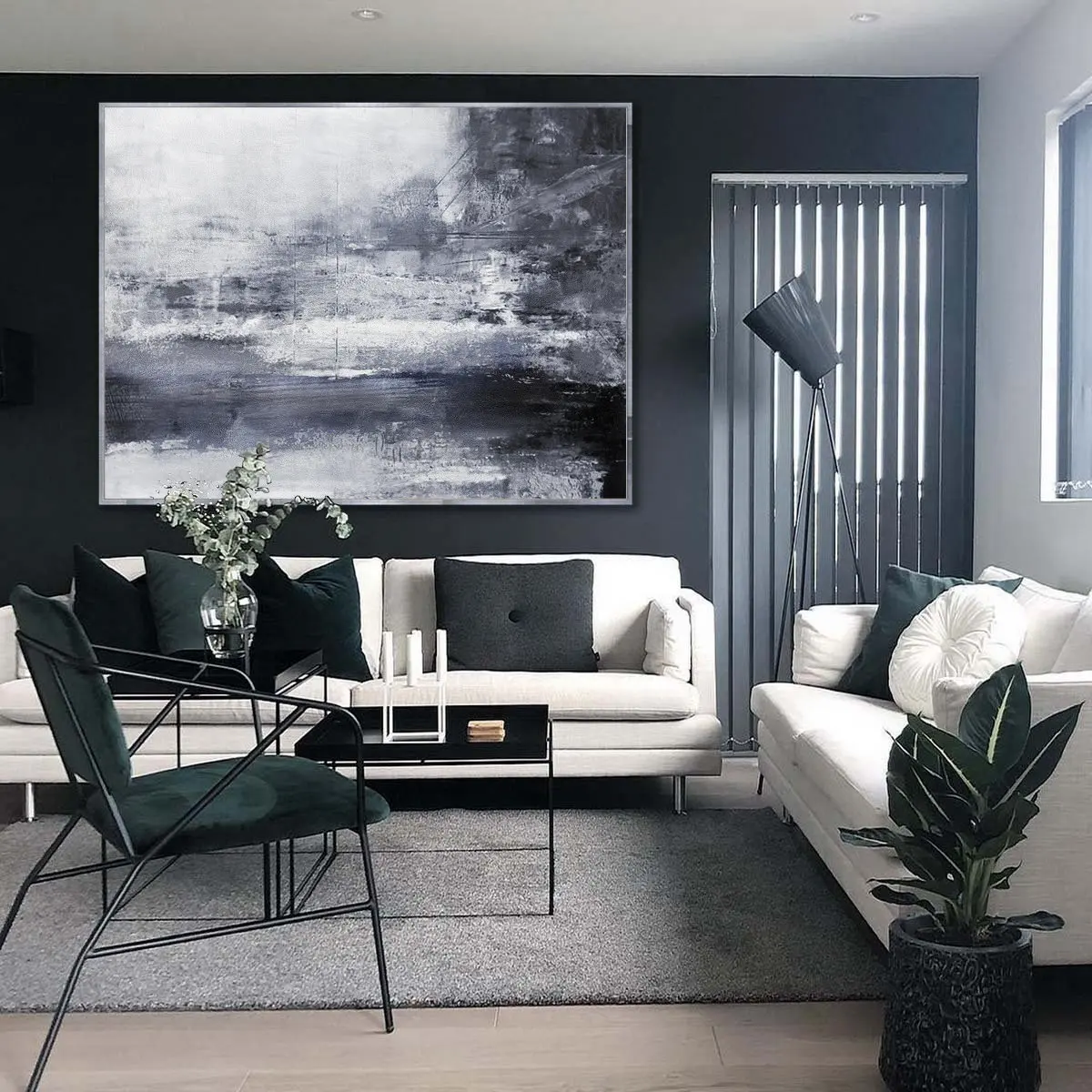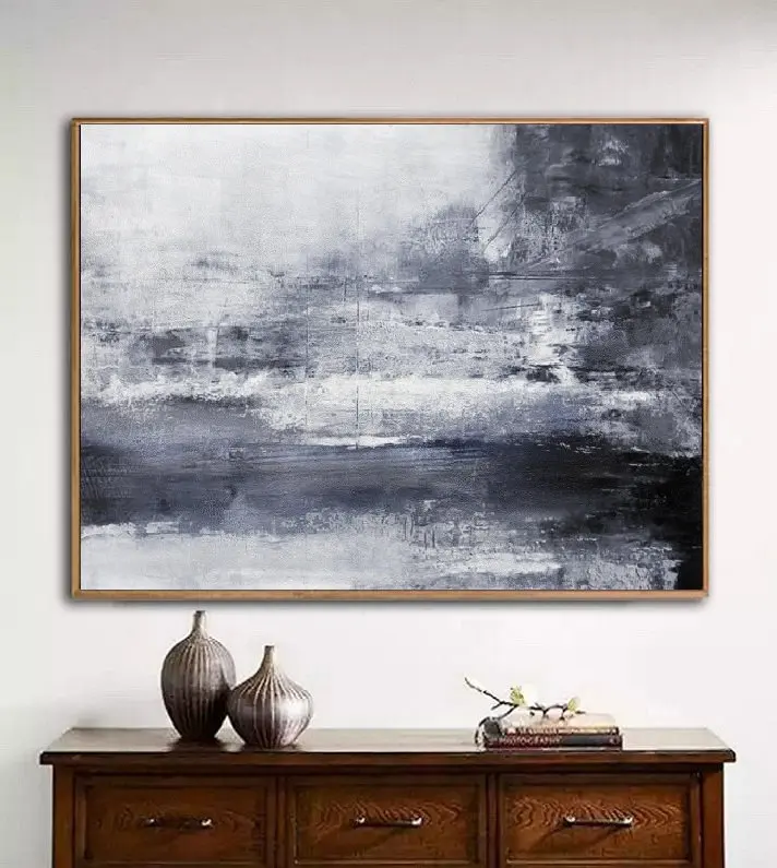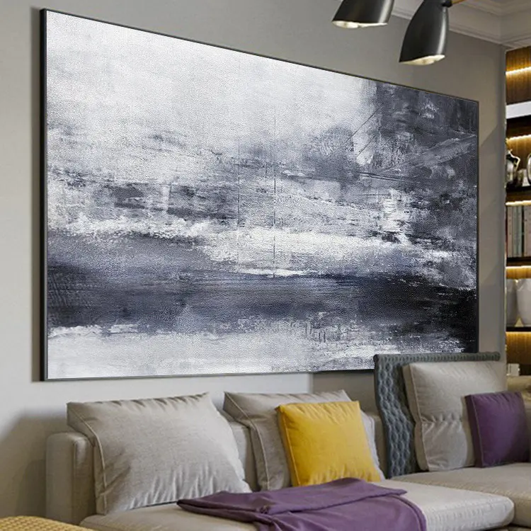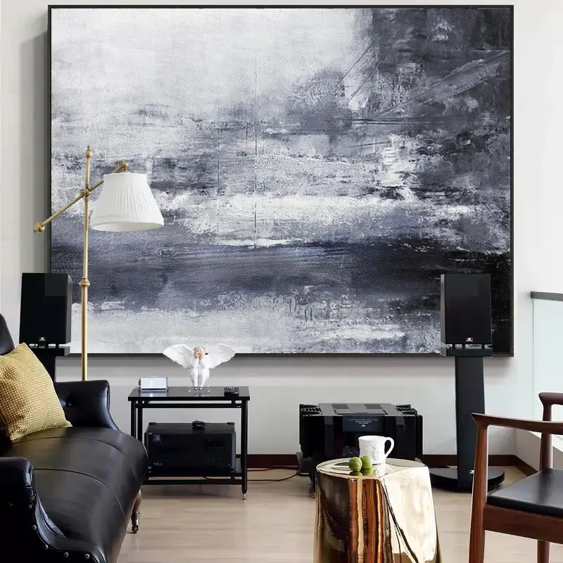 Черно-белая картина, большая абстрактная живопись, горизонтальная настенная живопись, ручная работа, большая настенная живопись, Настенный декор, большой холст