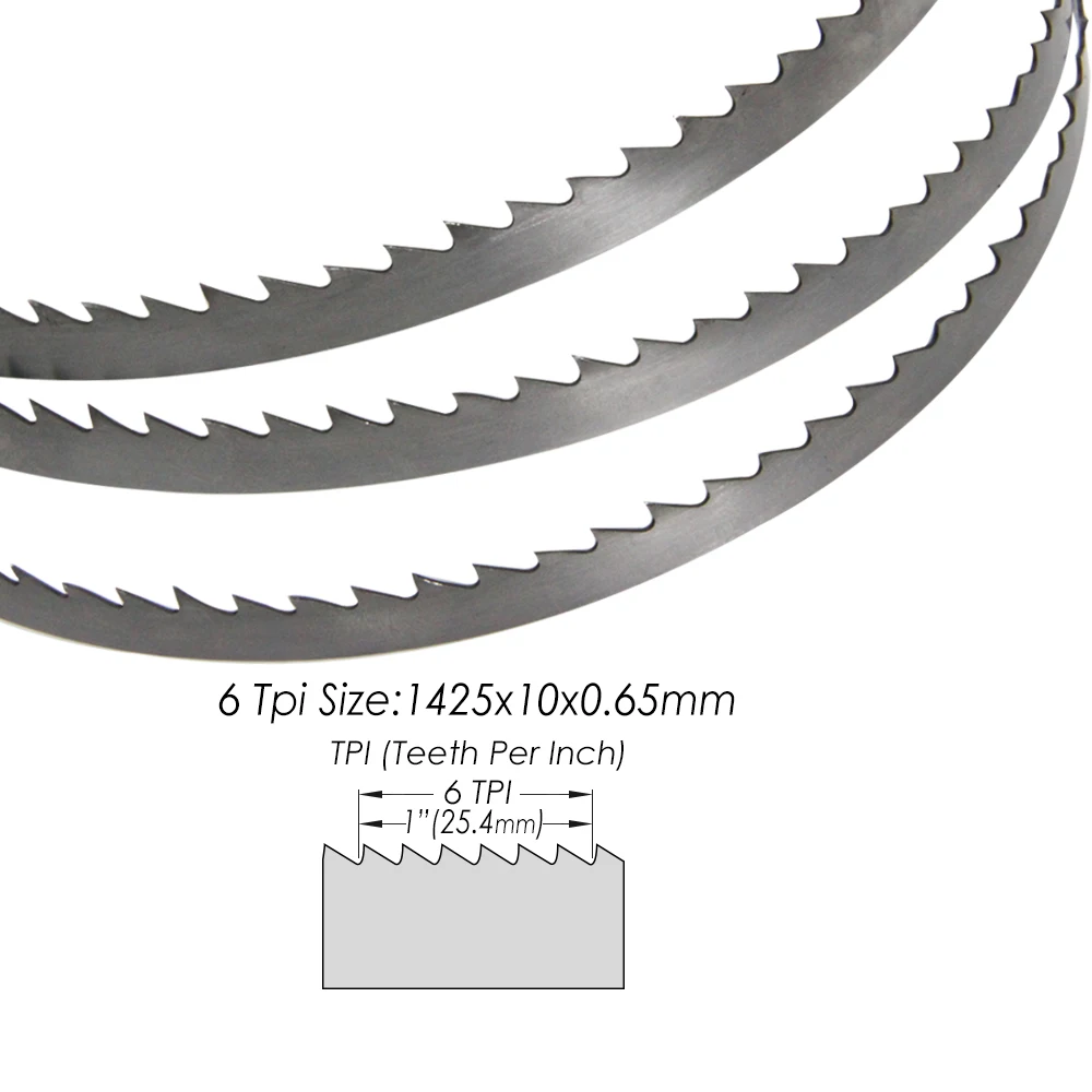 Полотно ленточной пилы 56 дюймов, 1425 мм, 1425x10x0,65 мм, TPI 6, углеродистая пружинная сталь для ленточной пилы, резки дерева, металла, пластика, 2 шт.