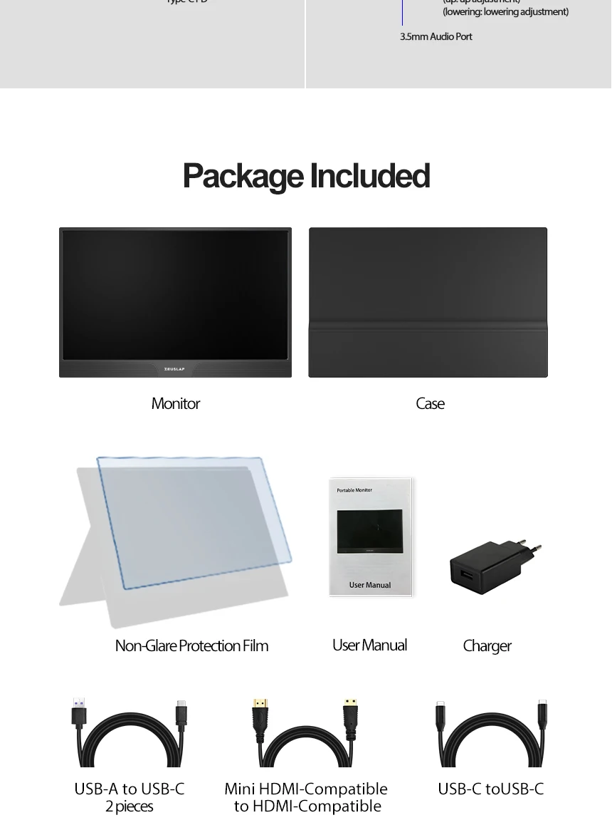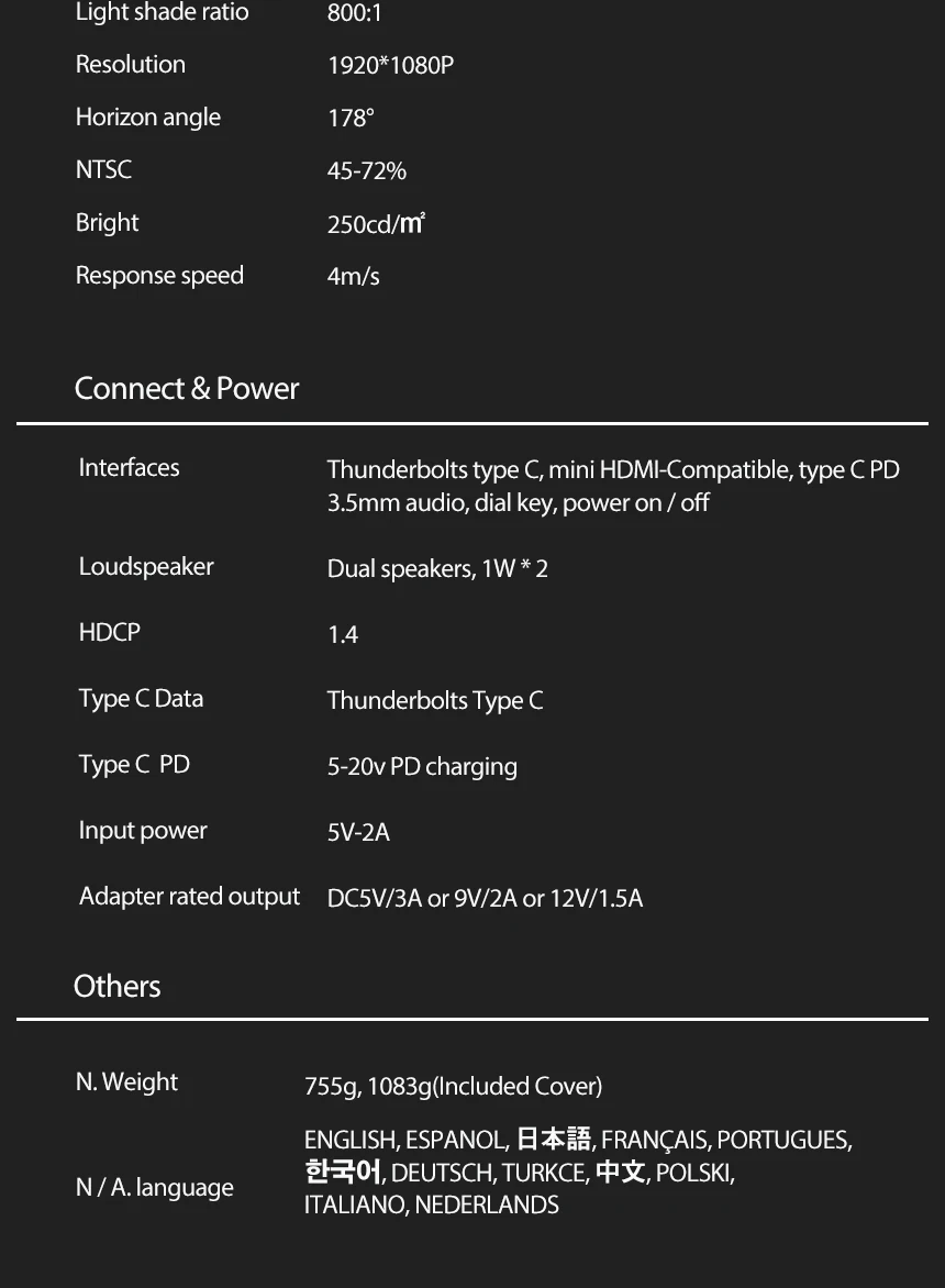 На данный момент я очень доволен продуктом очень хорошего качества-Цена и очень быстрая Доставка из Франции (в Испании не было запасов, когда я его купил). Его легче подключить к ПК с USB-C, так как с помощью кабеля у вас есть питание, передача изображения и видео и сенсорная функция. В моем случае мне нужны два кабеля (все входит в комплект поставки) HDMI на мини HDMI и USB-A на USB-C (оба на компьютере) чтобы иметь сенсорный экран, как только необходимые драйверы установлены, это стоило мне немного. Чтобы поставить но, динамики звучат довольно плохо по сравнению с моим ноутбуком. В высоких объемах звучит много банок. Короче говоря, отличное качество продукции-Цена с Европейского Склада, идеально подходит для того, чтобы поставить как второй экран и увеличить производительность и комфорт. Очень общительный продавец, без сомнения, рекомендуется.