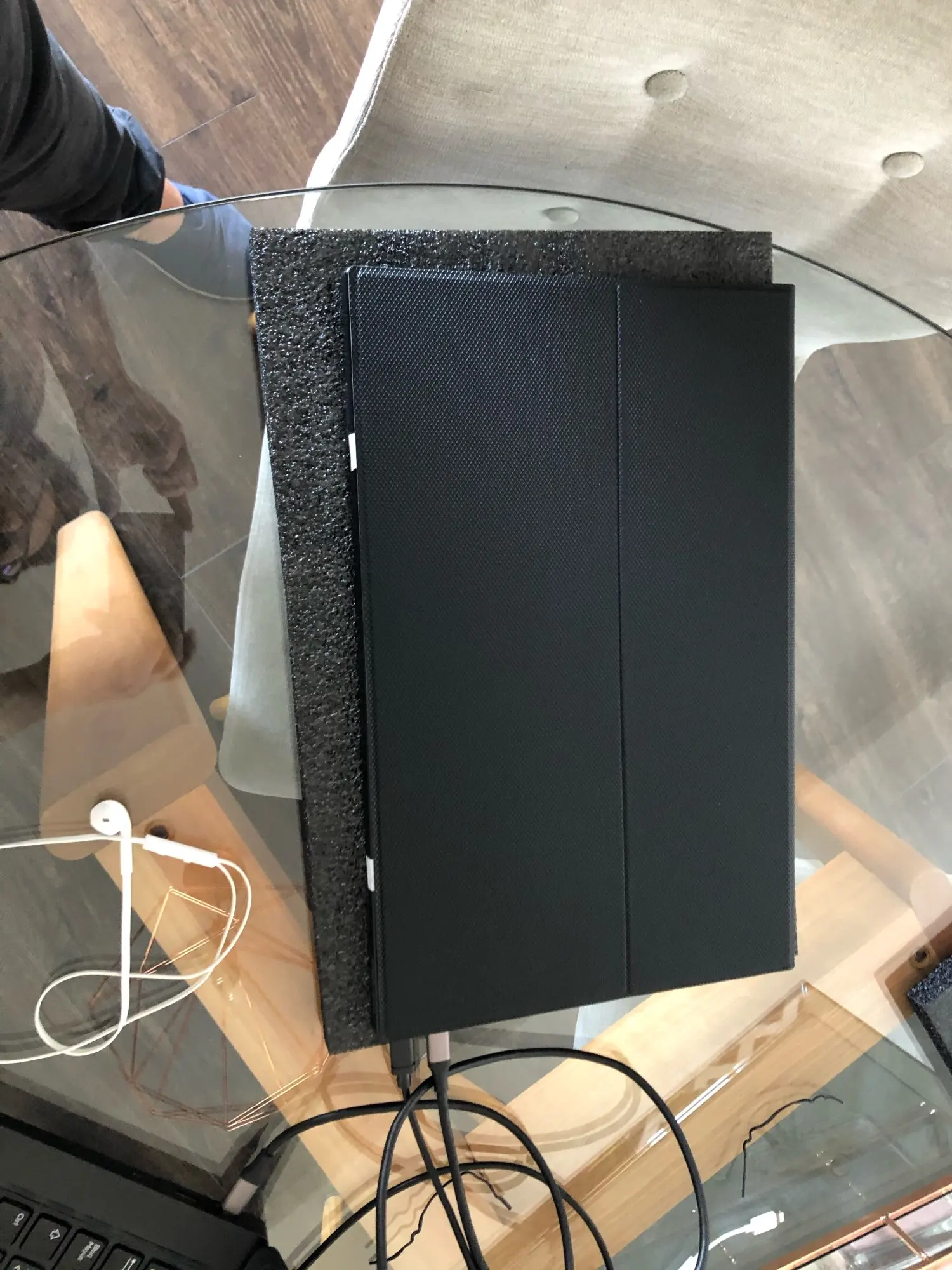 Доехал за 14 дней. Упаковано в коробку и дутую пачку внутри, приехало целое в пункт DPD. Пленка в комплекте есть, но какая-то она мятая, не стал клеить. Сам экран понравился: HDR определяется в ютубе, сенсор работает как с виндовсом, так и с андроидом. С телефоном (Xiaomi Mi 8 и Honor 10 lite) подружить не удалось, сенсор работает, а картинка не идет, но есть ТВ бокс, который удалось превратить в планшет. ТВ бокс (Khadas VIM3) вместе с этим монитором питаются от дешевого павербанка, но если яркость выкрутить на максимум, то ему питания не хватает, возможно мне нужна банка с быстрой зарядкой. Сенсор начинает работать почему-то если воткнуть оба USB в ТВ бокс, а потом можно оставить только основной провод, а дополнительный воткнуть в павербанк. Точное энергопотребление не замерял, позже придет мини ПК на винде, сделаю из этого мега планшет и сделаю дополнительный обзор.