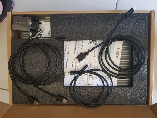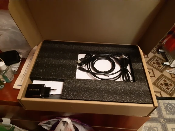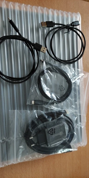 На первый взгляд. Идеально подходит. Больше, чем установить и проверить. Я поставлю еще одно уведомление через несколько дней. Супер быстрая доставка. Номер отслеживания в c5000 *******. Посылка, которая была быстрее, чем те, что в рее ********* FR Защитный чехол для экрана. Дополнительная пластиковая пленка в коробке. В кабеле: 2x USB A -> USB C 1x USB C -> USB C 1x HMDI -> мини HDMI 1x Зарядное устройство Secteur Q3