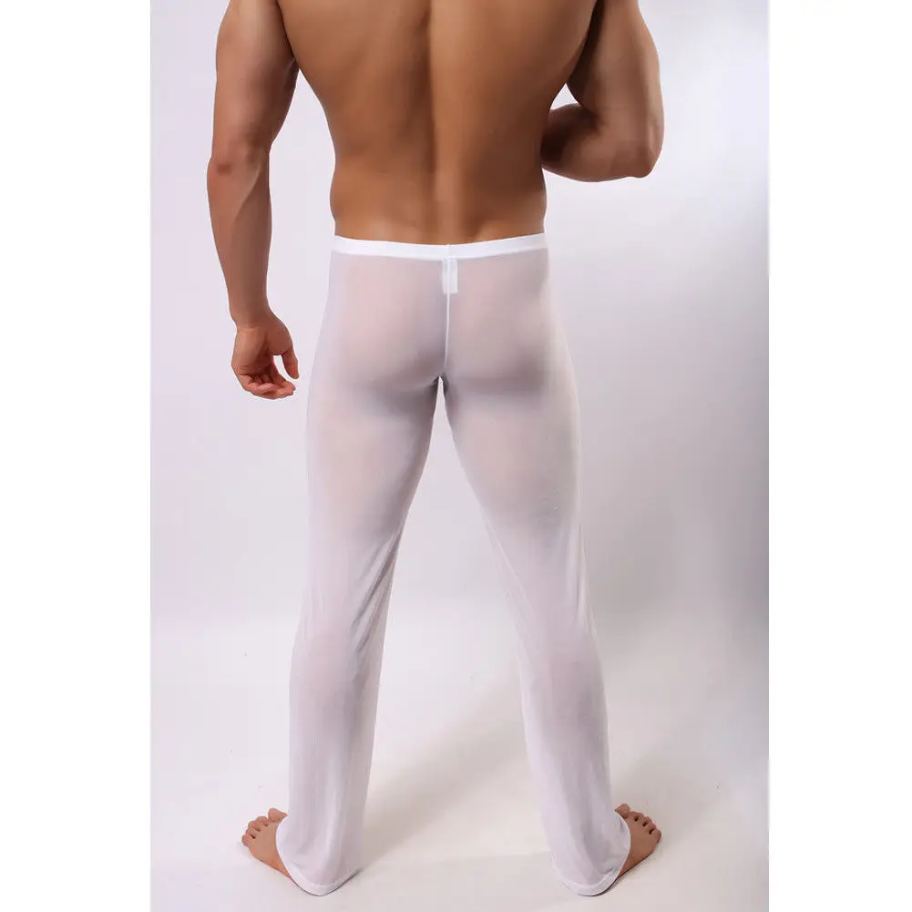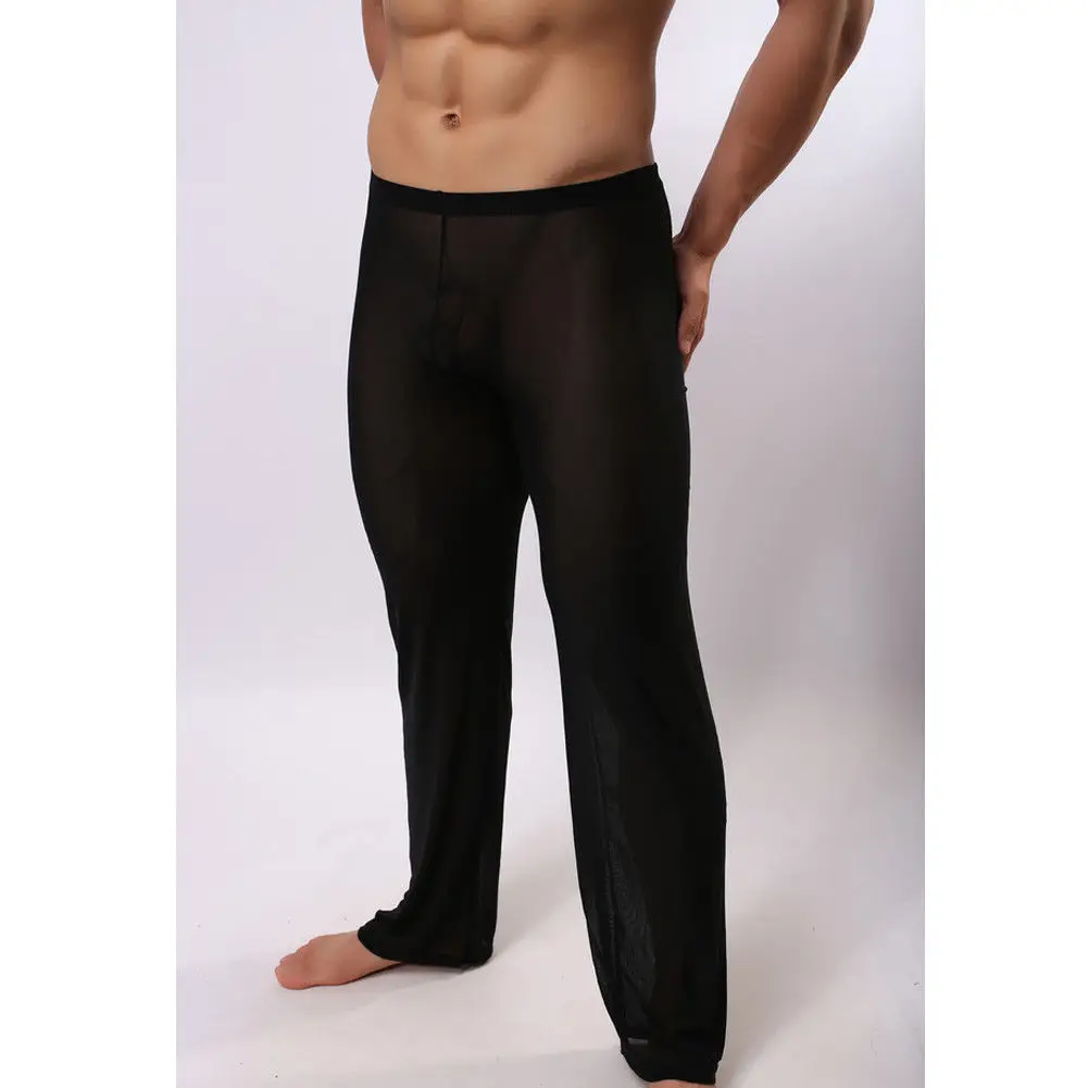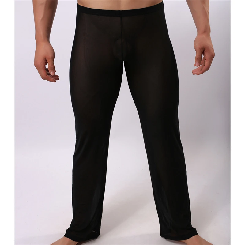 Длинные мужские брюки, пикантные сетчатые дышащие слипы, Мужские штаны для сна, мужские повседневные брюки, домашняя одежда, прозрачные пижамные штаны