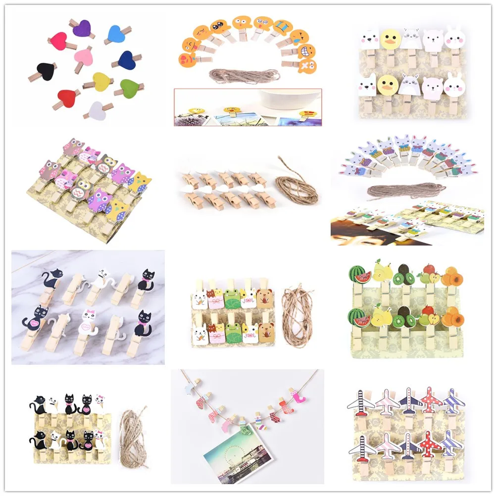 Деревянные бумажные зажимы для фотографий, 20 шт., милые каваи, сер...