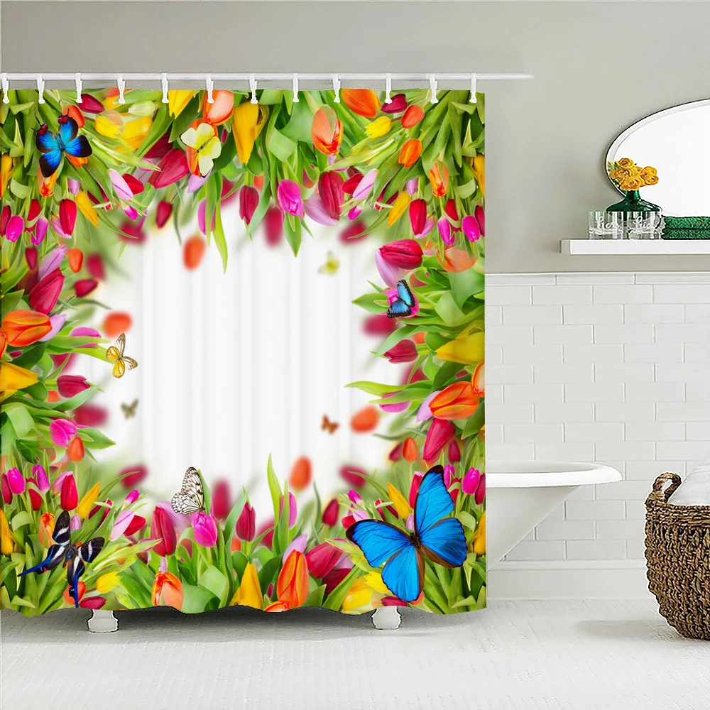 3D занавеска для душа с свежим цветком, занавеска для ванной, водостойкая, полиэстер, экран для ванной с 12 крючками 180x180 см 180x200 см