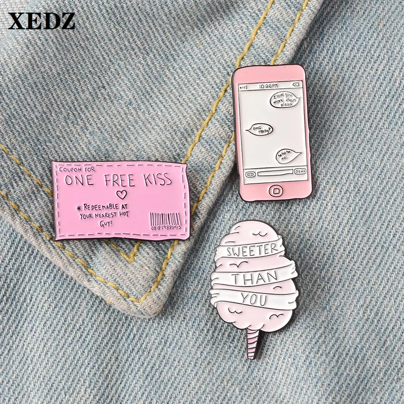 Поцелуй воздушный билет розовая Милая любовь SMS телефон удачный Зефир эмаль булавки Love Pushpin Панк Джинсовый свитер ювелирные изделия брошка на лацканы