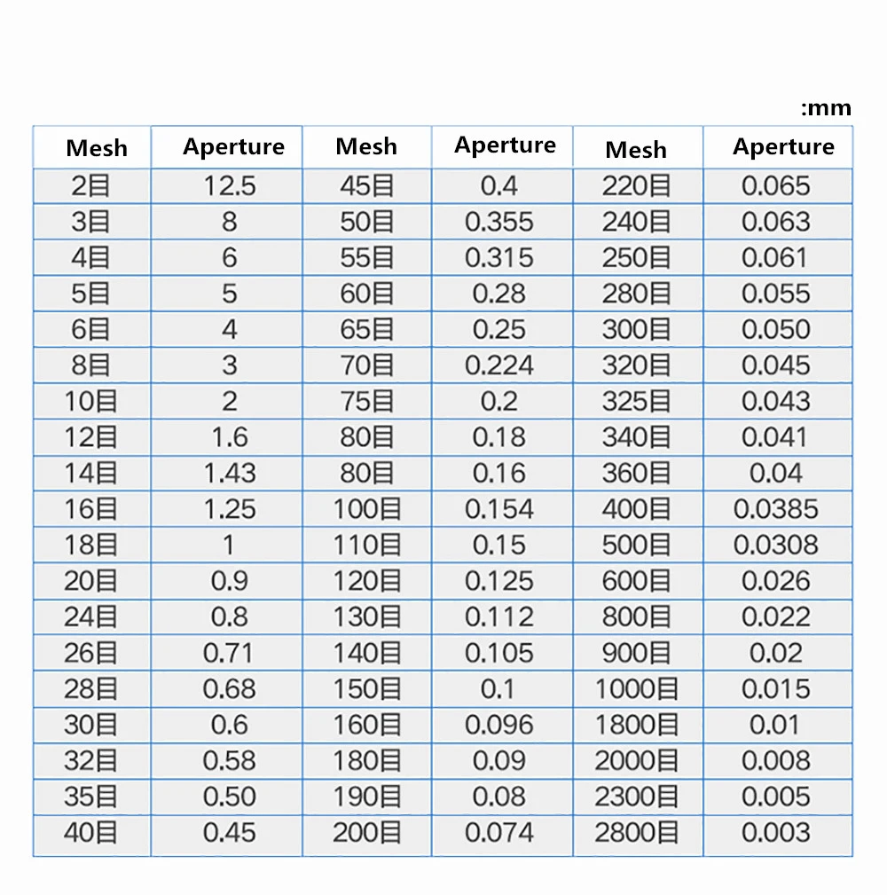 Мука 30-50 сетка, торт для 40 сетки, обернуть муку для 10-24 сетки; Зернистая мука 20-50 сетки; Китайская медицина порошок 50-80 сетки; жемчужный порошок 120-180 сетка; Спрей порошок 100-140 сетка; Металл 3D печать 316 порошок 200-250 сетка; Целлюлоза 80-100 сетка; Линия порошок 100-140 сетка.