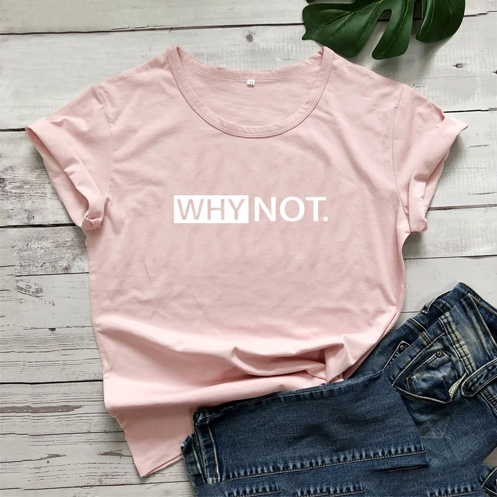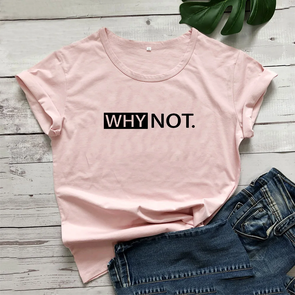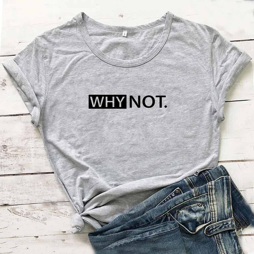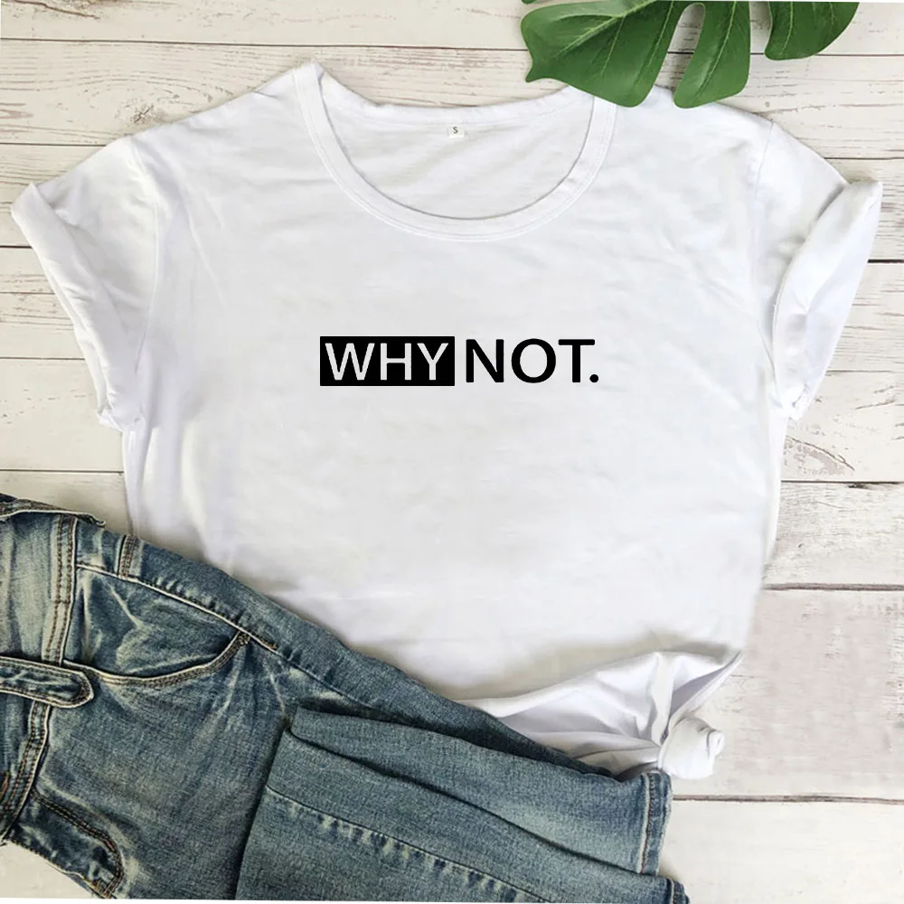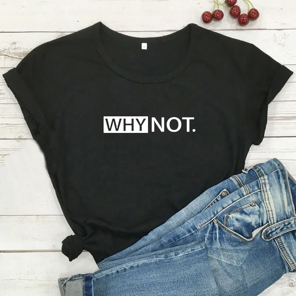 Женская футболка с надписью Why Not Funny, черно-белая свободная футболка в стиле Харадзюку, хлопковая футболка с коротким рукавом