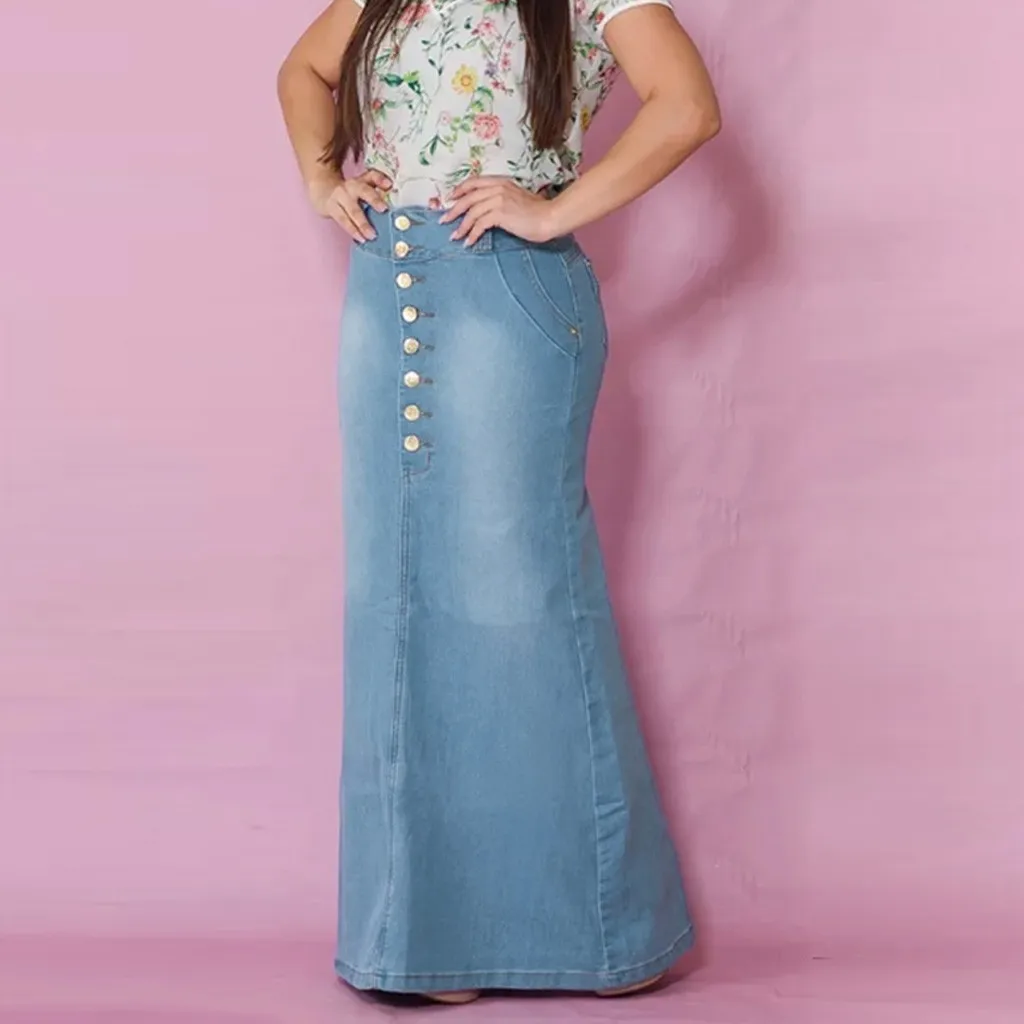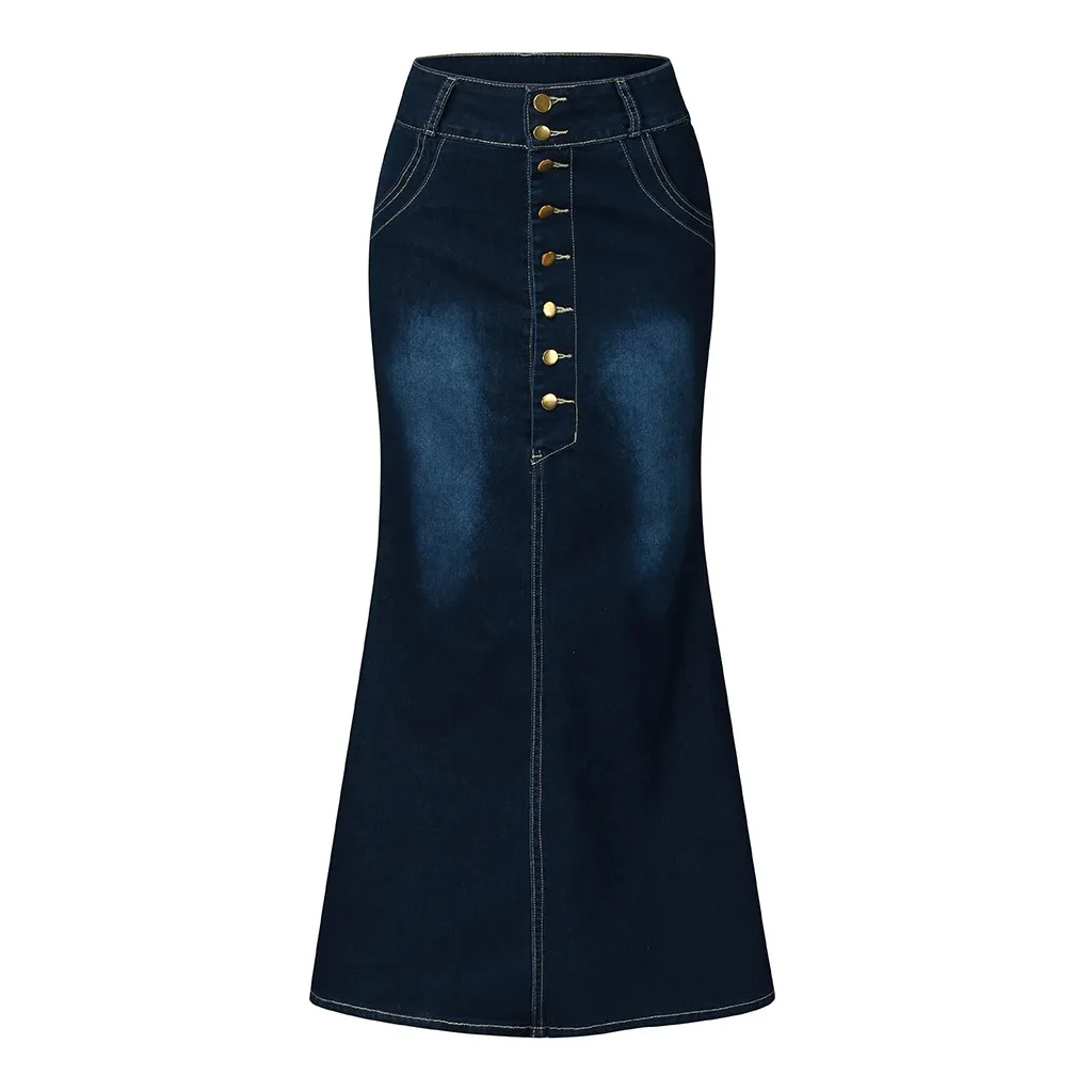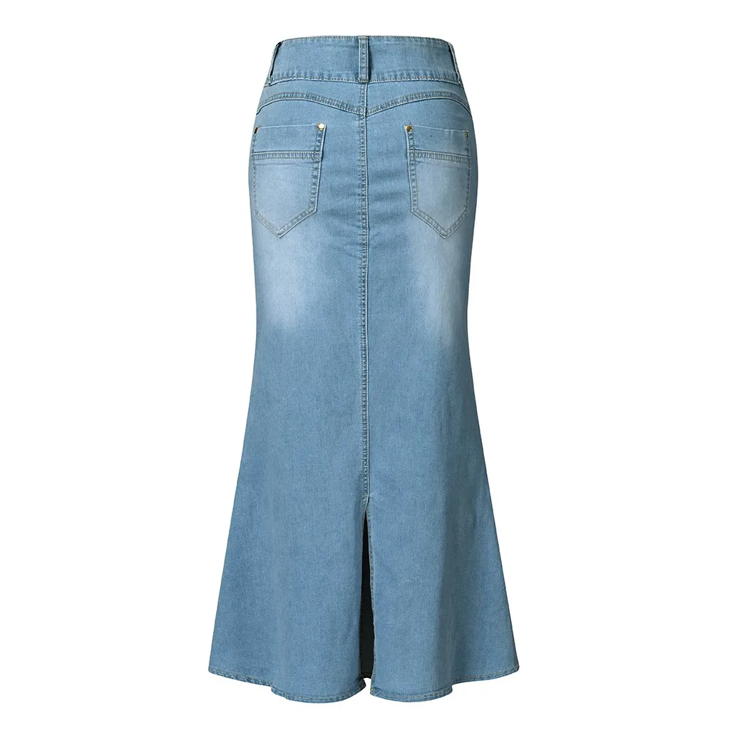 Женская Облегающая джинсовая юбка с разрезом и высокой талией, Повседневная Длинная джинсовая юбка на пуговицах, джинсовая юбка, 35