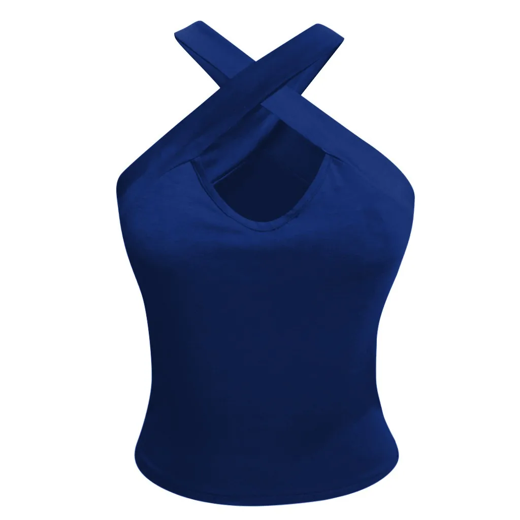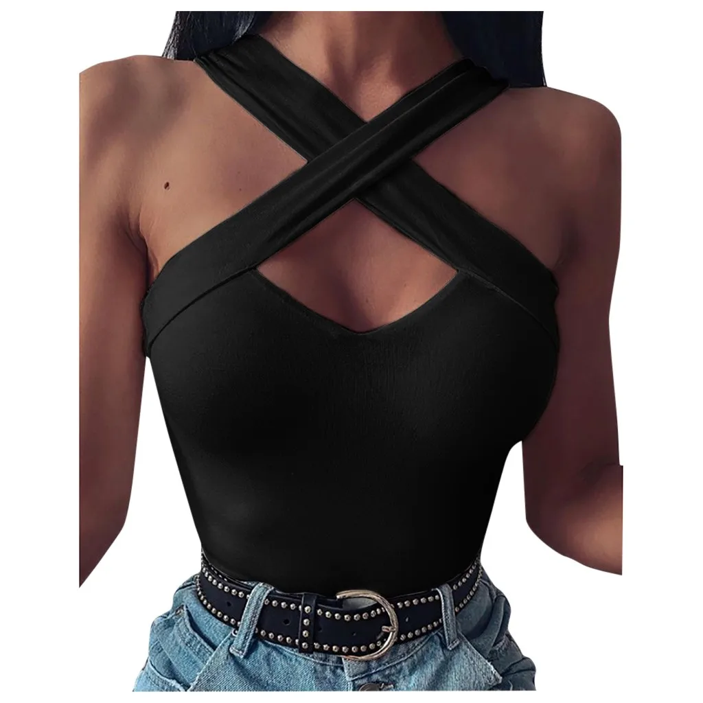 Женский укороченный топ на бретельках, с вырезом спереди, лямкой на шее, без рукавов, открытой спиной, бандажный жилет, летние сексуальные топы # YJ
