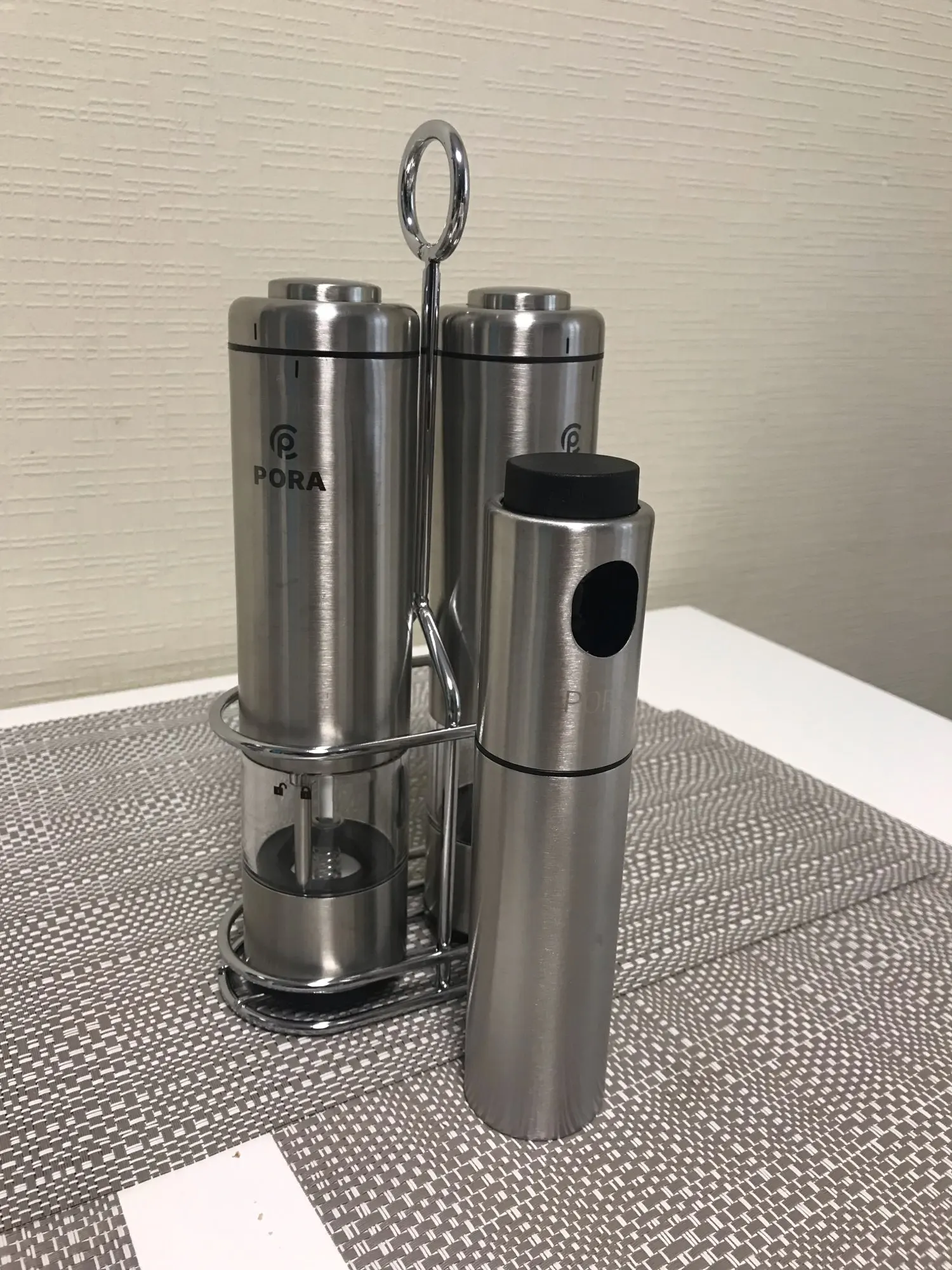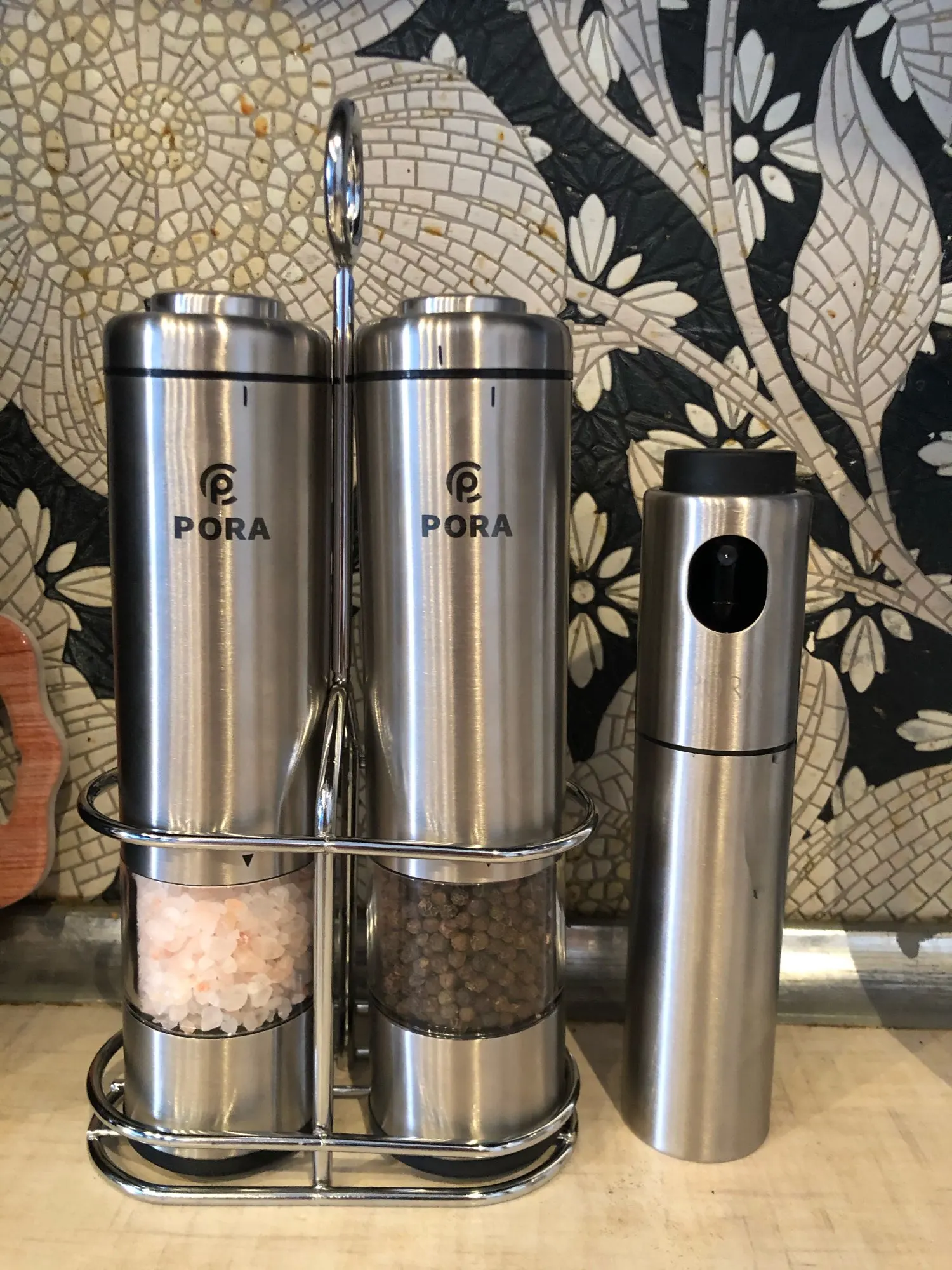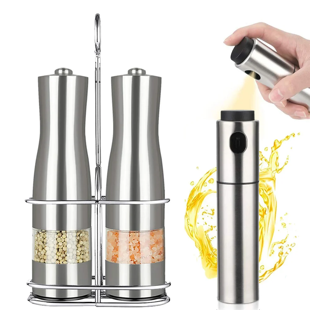 Мельница для перца электрическая, из нержавеющей стали, с металлической подставкой и распылителем масла