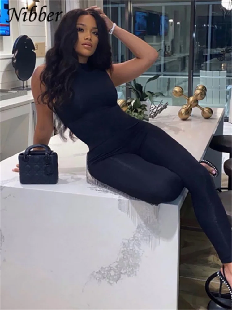 Женский облегающий спортивный костюм, комбинезон без рукавов Nibber, однотонный элегантный повседневный уличный костюм для фитнеса, на лето