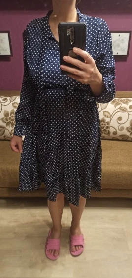 Платье-рубашка женское шифоновое в горошек, с длинным рукавом и V-о...